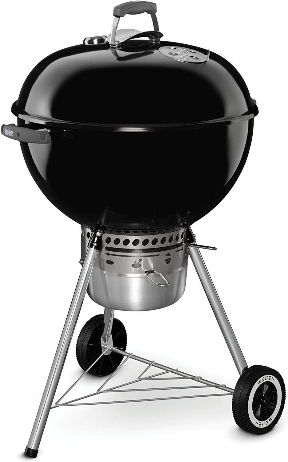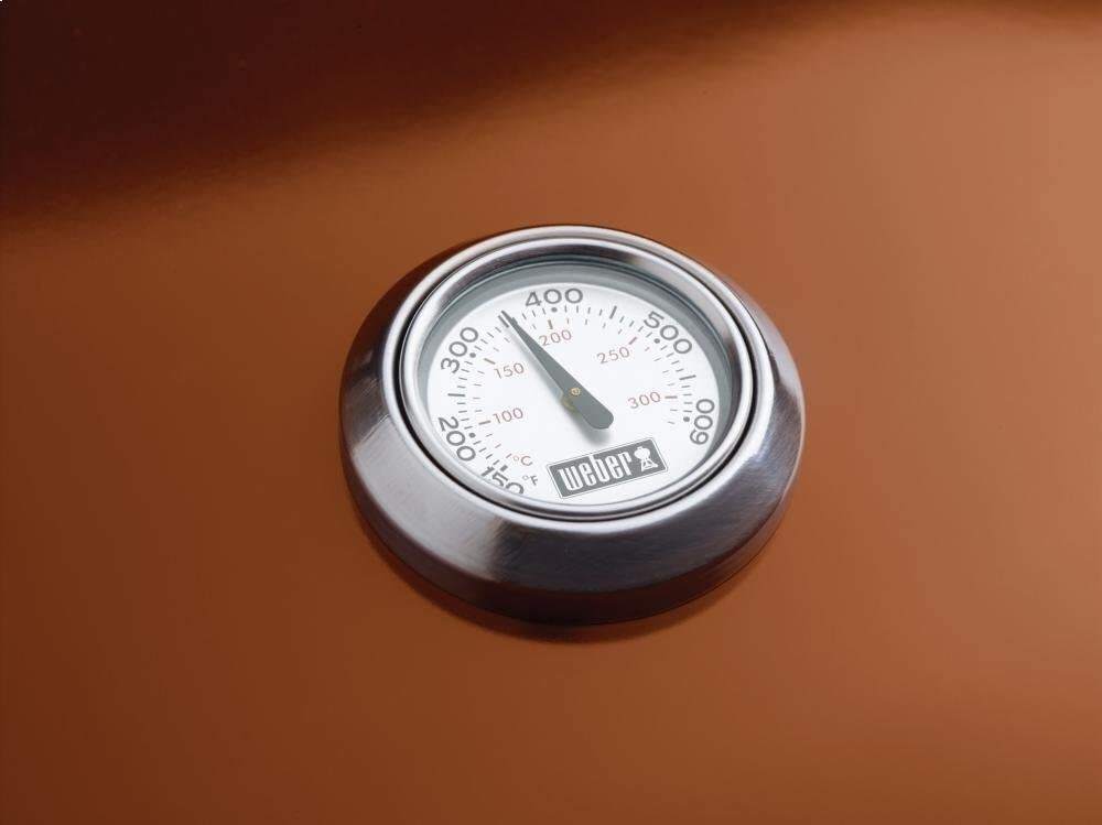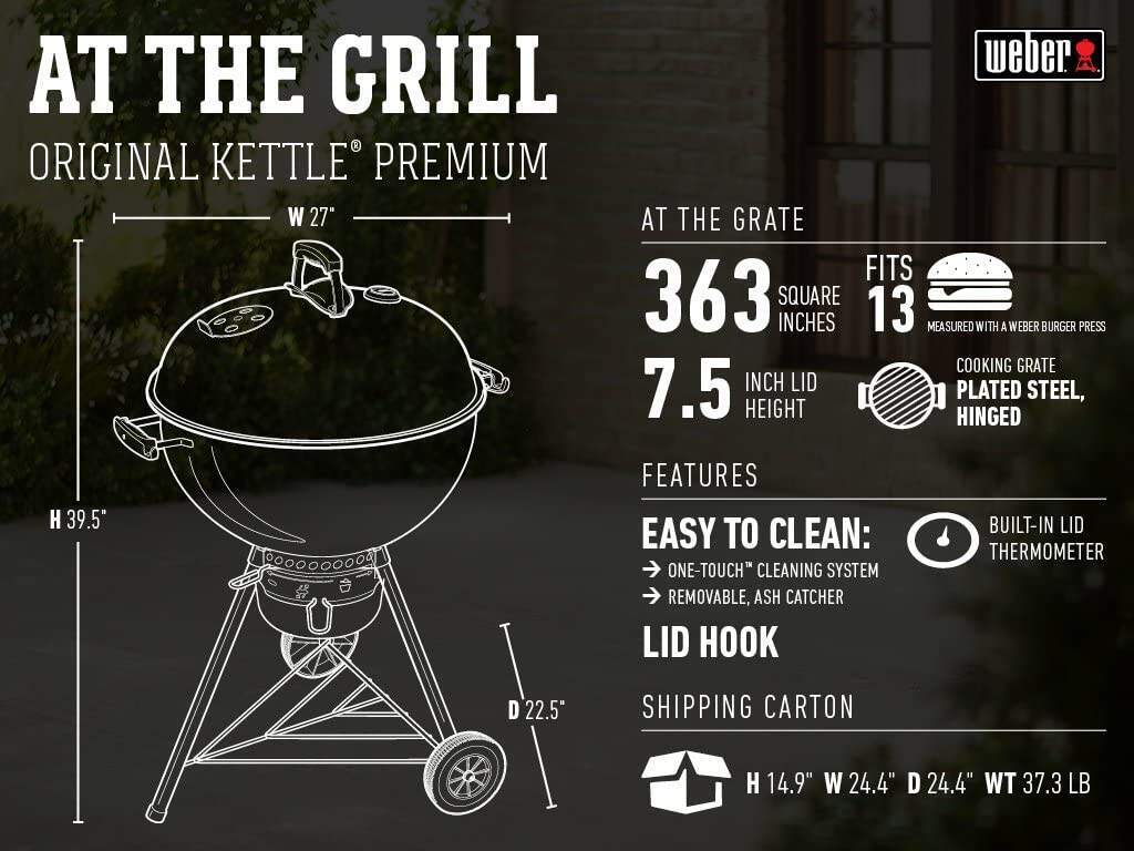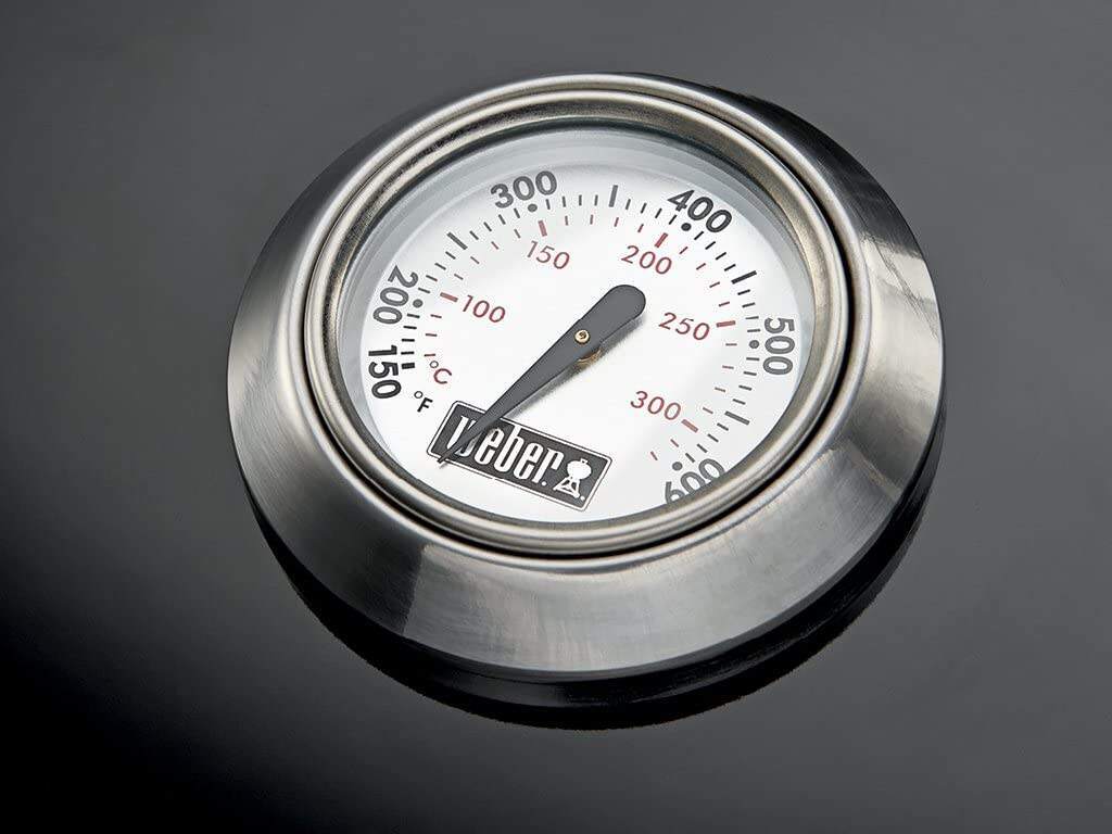 - Holds up to 13 burgers made with a Weber burger press; Built-in lid thermometer. Rust-resistant aluminum dampers