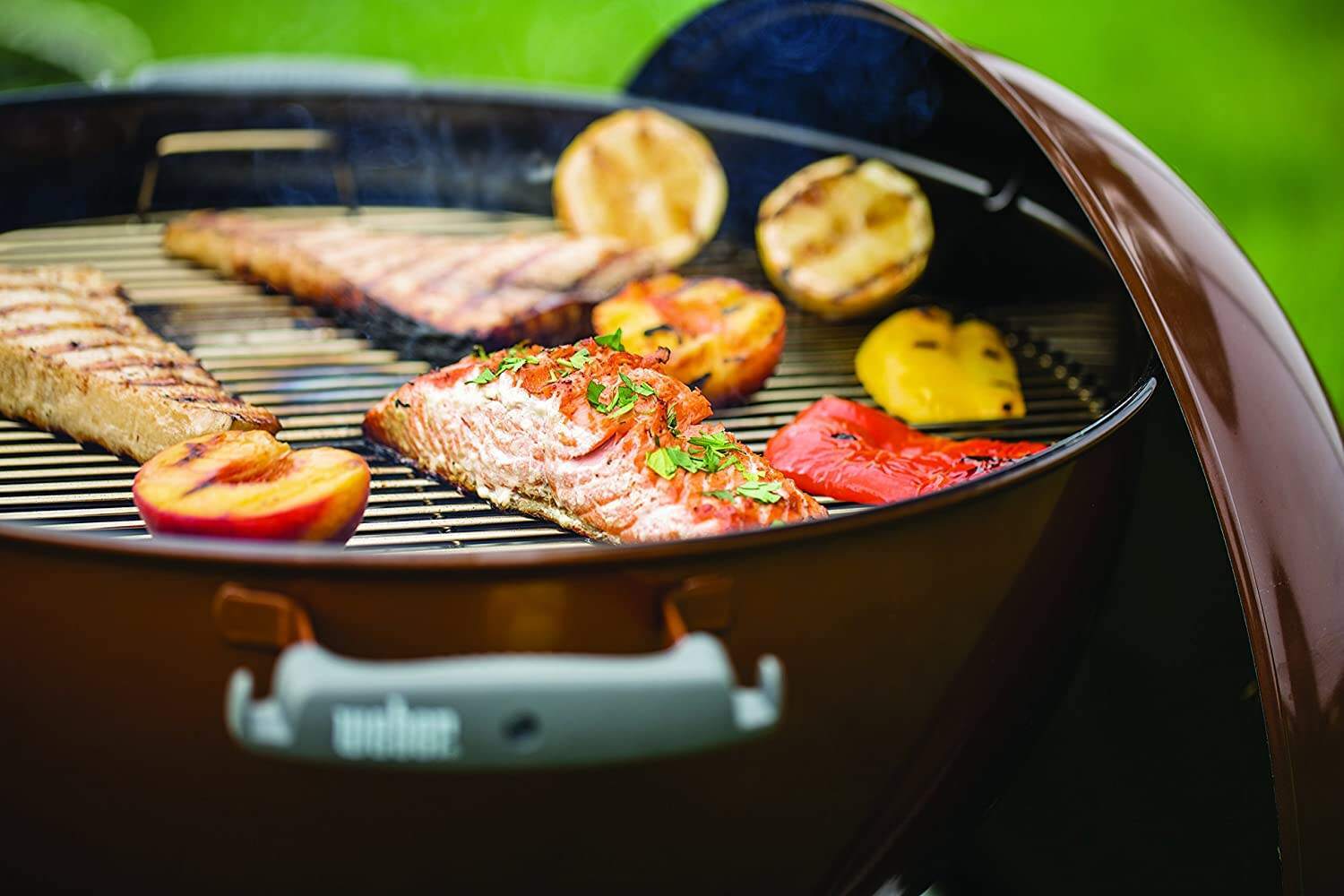 - Use the lid hook to avoid placing the lid on the ground while grilling