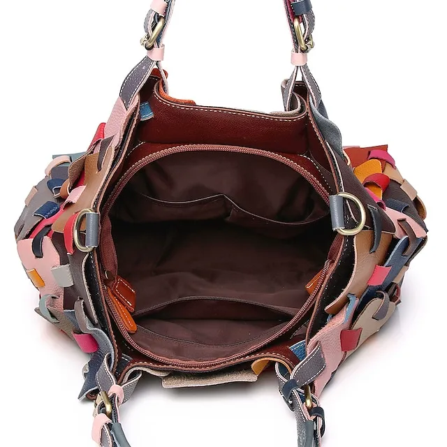 Women's Handbag Cowhide Daily Office & Career Zipper Geometric Rainbow