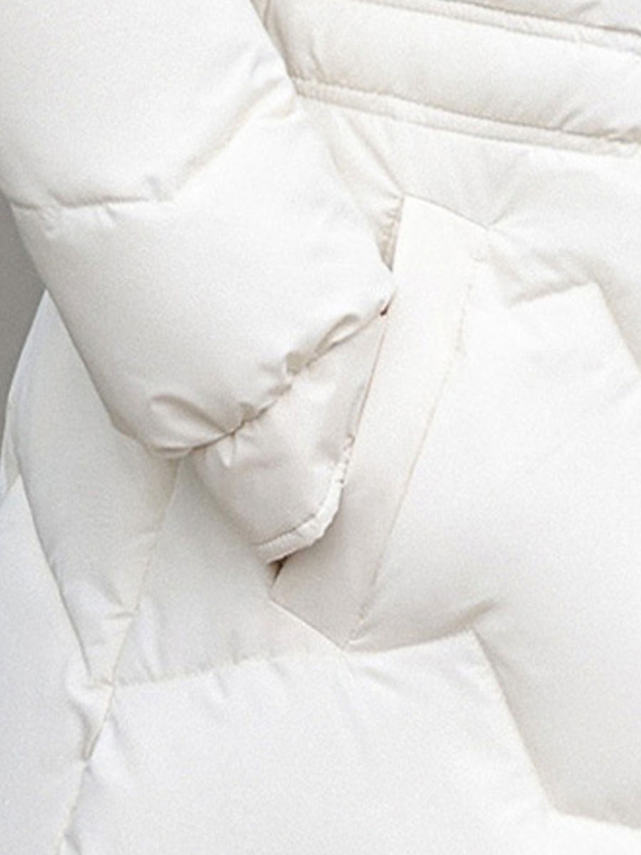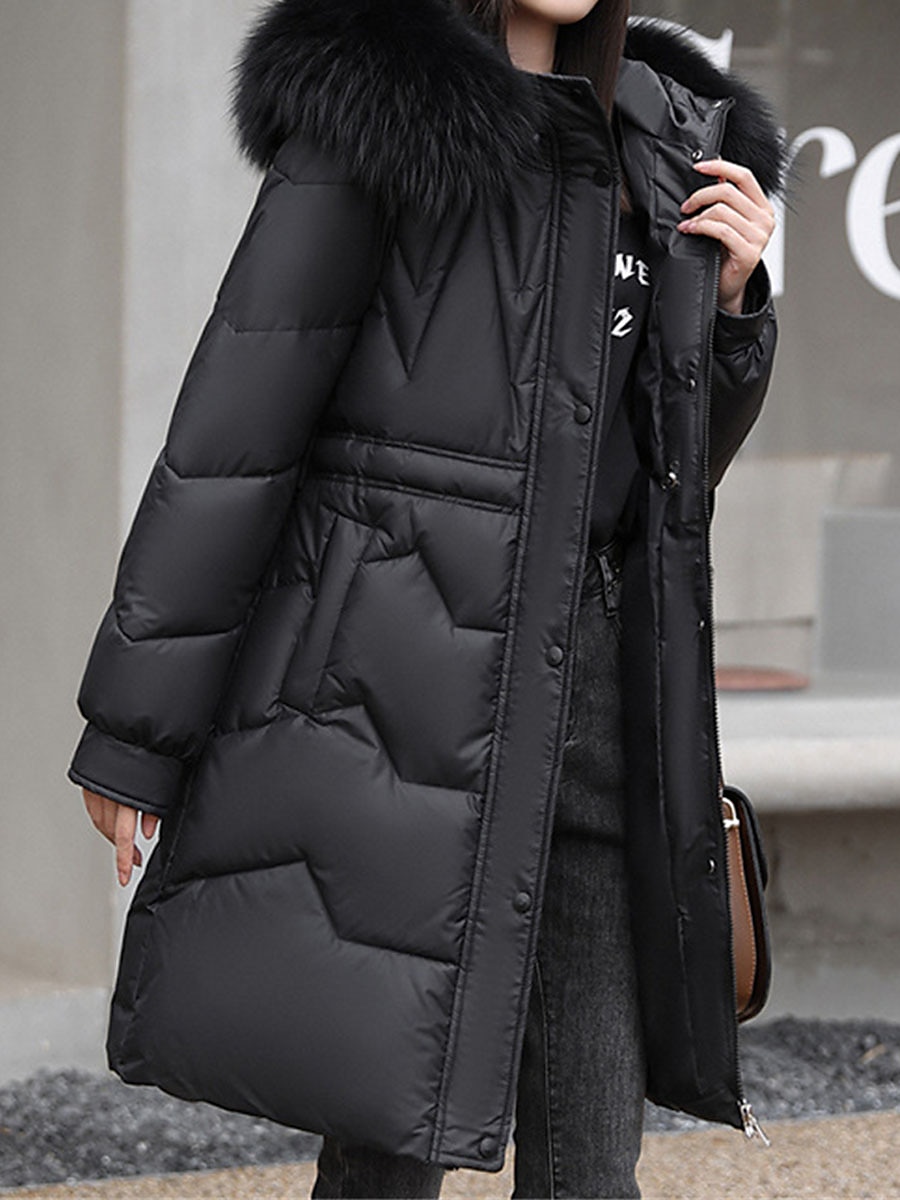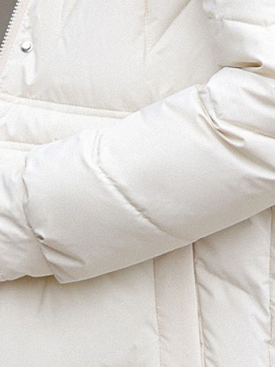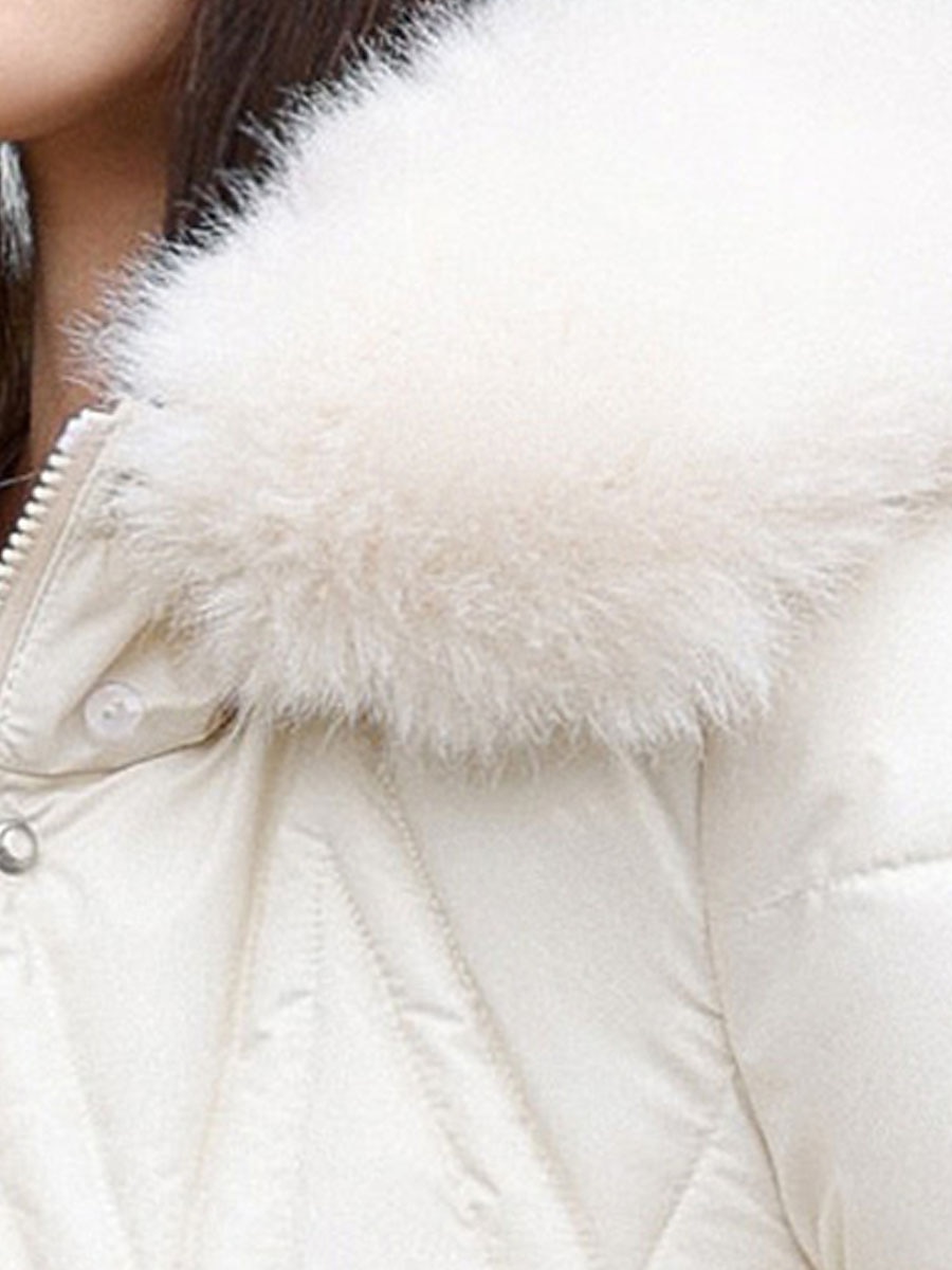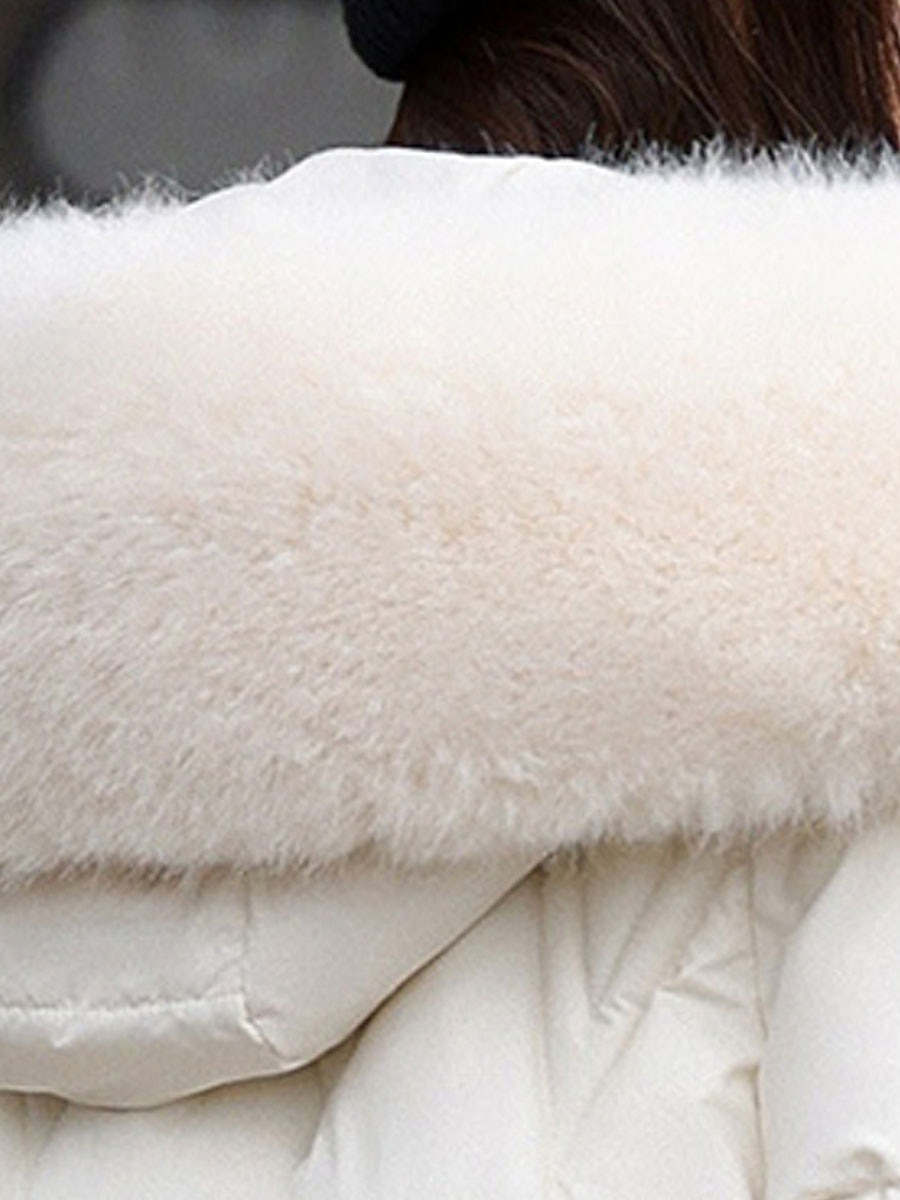 Women's Parka Winter Long Puffer Jacket Fall Windproof Warm Zipper Coat with Pocket Fur Collar Hood Modern Casual Street Style Plain Regular Fit Outerwear Long Sleeve Black White Pink