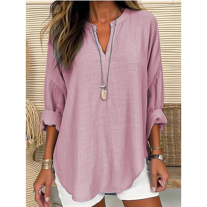 Gender:Women's,Style:Basic,Occasion:Daily,Casual,Tops Type:Blouse,Shirt,Dressy Tops,Neckline:Notched Neck,Fabric:Polyester,Sleeve Length:Long Sleeve,Elasticity:Inelastic,Look After Me:Machine wash,Washable,Wet and Dry Cleaning,Top Length:Regular,Pattern:Solid Color,Plain,Season:Fall,Spring,