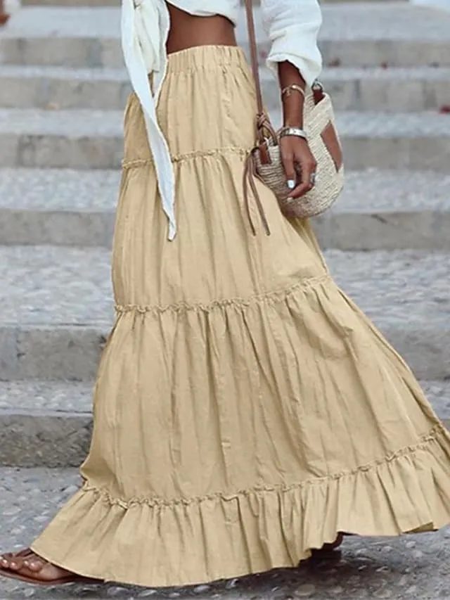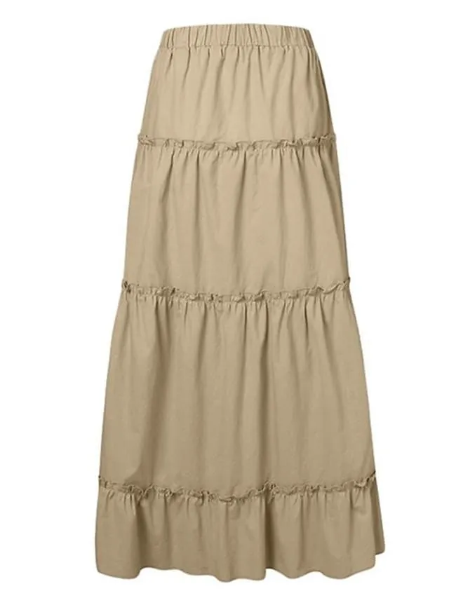 Women's Skirt Swing Maxi Cotton Blend Black Pink khaki Skirts Ruffle Fashion Casual Daily S M L