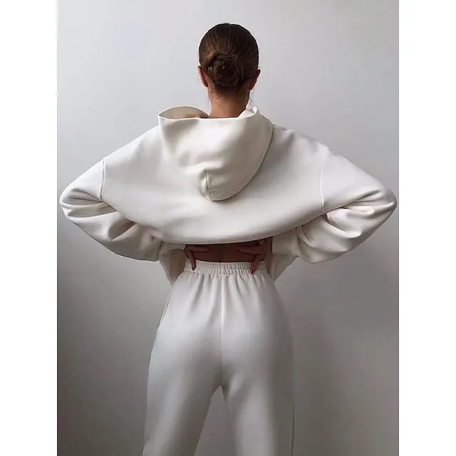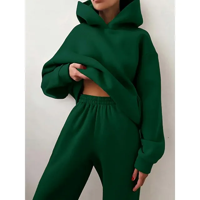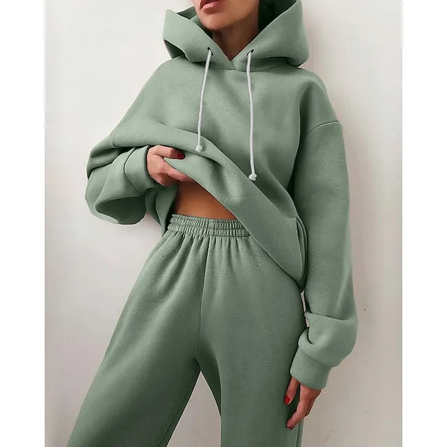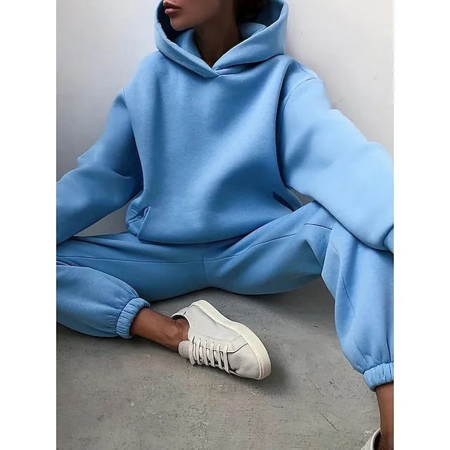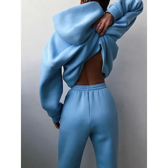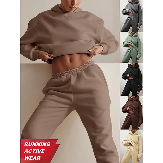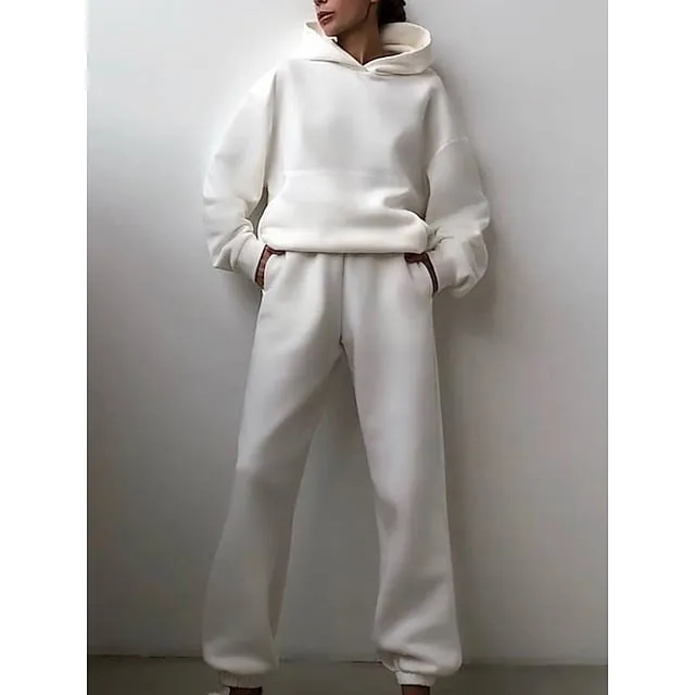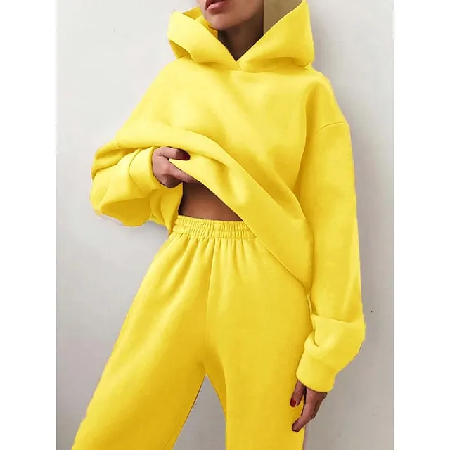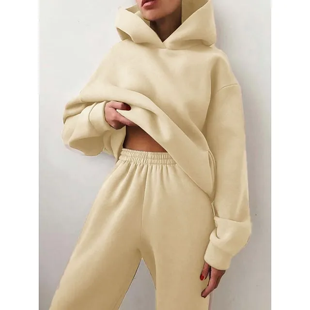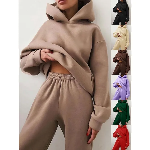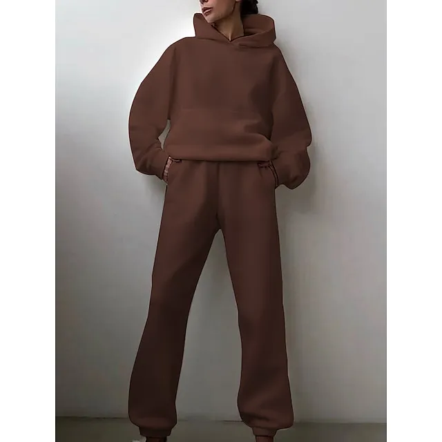 Gender:Women's,Sports Clothing Sub Category:Sweatsuit,Tracksuit,Clothing Type:Clothing Suit,Activity:Exercise,Jogging,Fitness,Running,Occasion:Lounge,Athleisure,Casual,Street,Season:Winter,Fall,Spring,Fit Type:Loose Fit,Function:Thermal Warm,Soft,Breathable,Fabric:Fleece,Sleeve Length:Long Sleeve,Design:2 Piece,Neckline:Hooded,Look After Me:Washable,Wet and Dry,