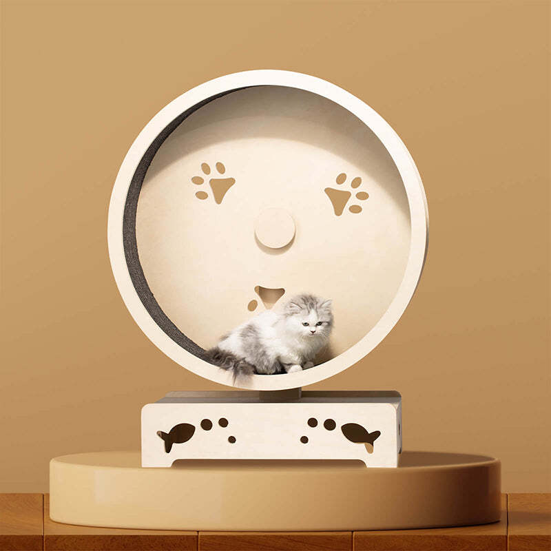 In addition to being an exerciser wheel,the treadmill also serves as a cat scratcher. The wheel is lined with sisal carpet on both the inside and outside.
