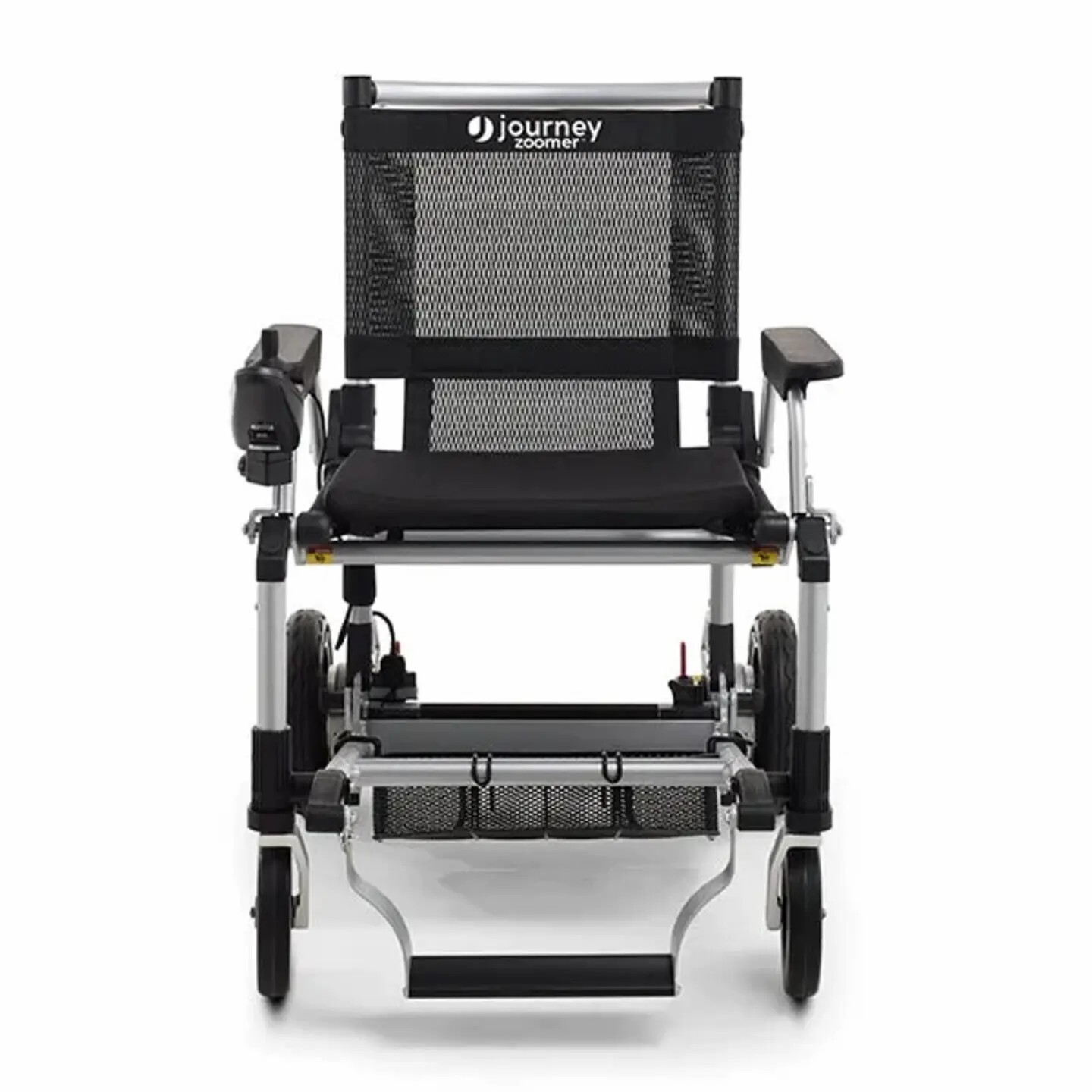 This folding power chair that puts your mobility at your fingertips. With easy one-handed joystick control and extreme portability, Zoomer works indoors and out to help you go almost anywhere your heart desires. Now you can take that "roll" in the park you miss or shop until you drop without slowing down.