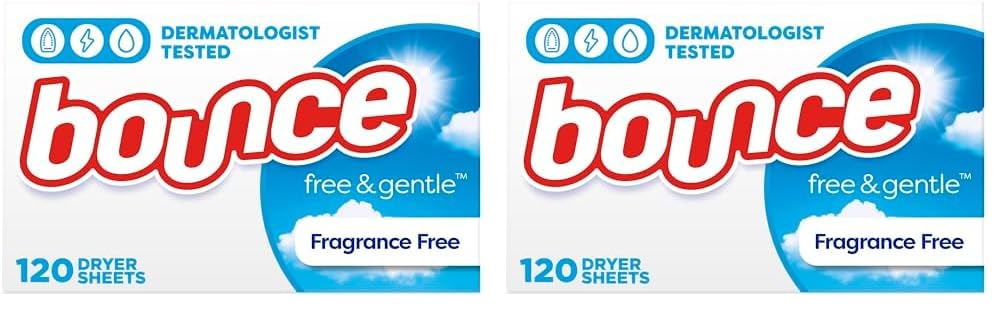 Bounce Free & Gentle Dryer Sheets, 240 Sheets, Unscented Fabric Softener Sheets, Hypoallergenic and Dermatologist Tested