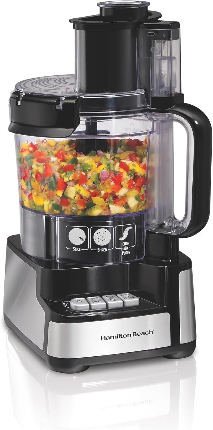 Hamilton Beach Stack & Snap Food Processor and Vegetable Chopper, BPA Free, Stainless Steel Blades, 12 Cup Bowl, 2-Speed 450 Watt Motor, Black (70725A)