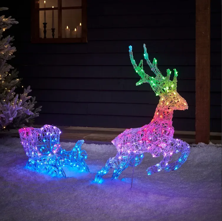 Smart Control Lighting Reindeer and Sleigh Christmas Decoration- Solar energy storage function