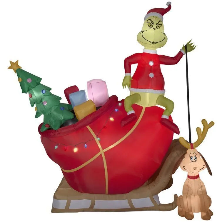 Christmas-Airblown Grinch and Max in Sleigh Colossal Scene Inflatable