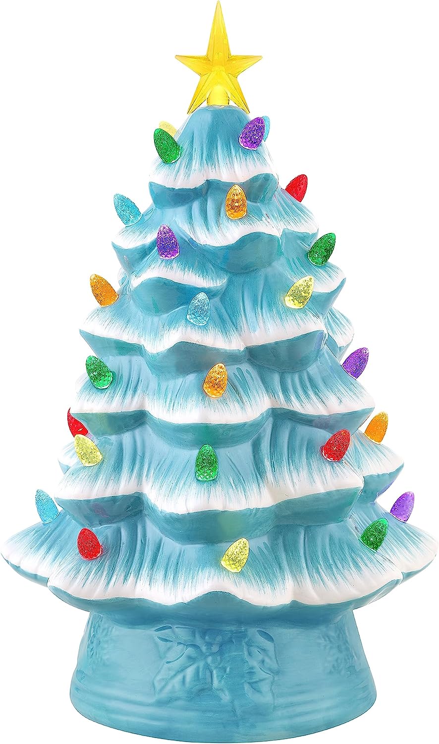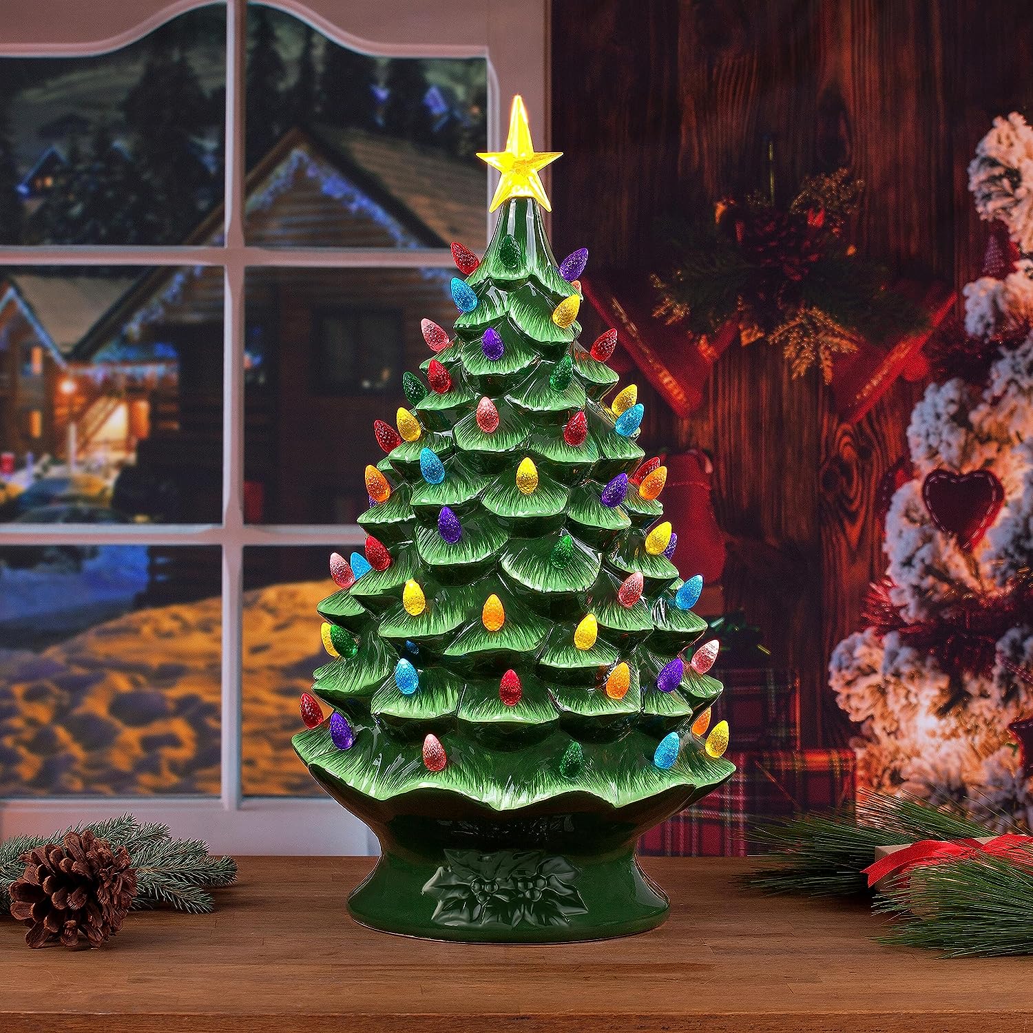 Mr. Christmas Nostalgic Ceramic Christmas Tree with LED Lights Indoor Decoration, 24 Inches, Pink