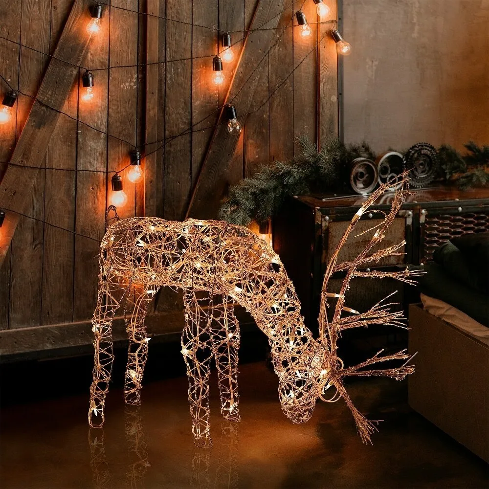 Christmas-Outdoor Rattan Grazing Christmas Reindeer Lawn Decoration with White Halogen Lights - 24 in.