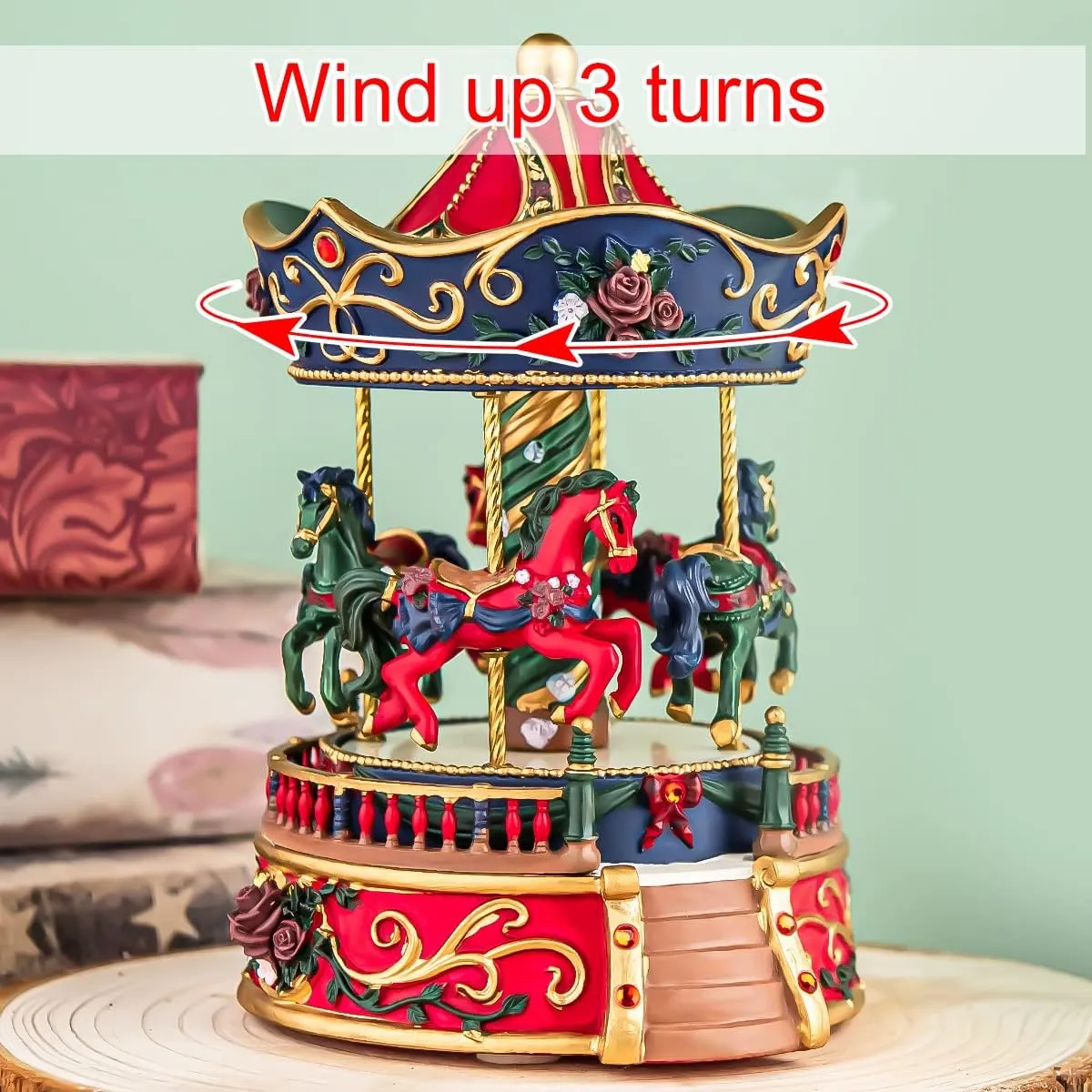 Christmas-Mr.Winder Carousel Horse Music Box for Girls, Vintage Musical Box for Women Kids Wife Mom Daughter Birthday Anniversary Valentine Play Castle in The Sky