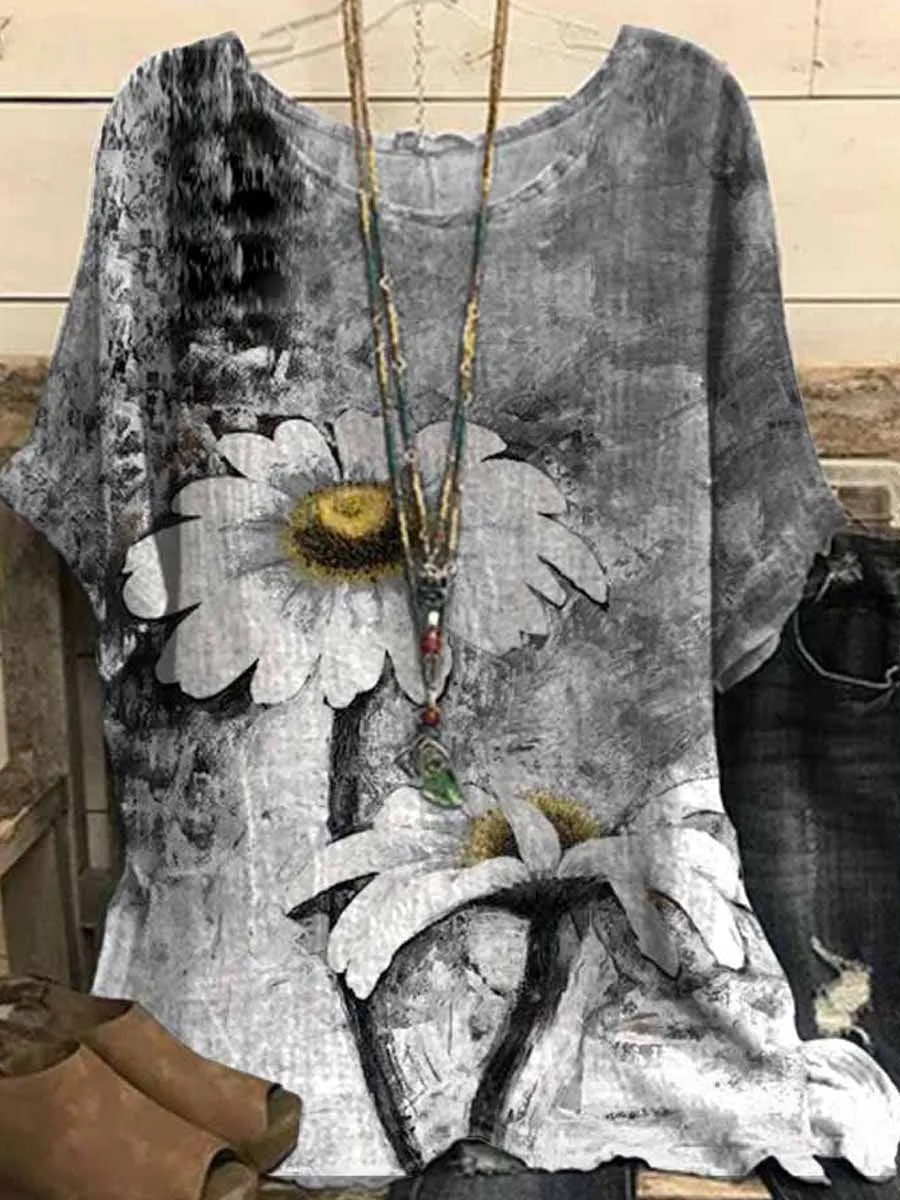 Women V-neck Long Sleeve Floral Printed Lace Tops