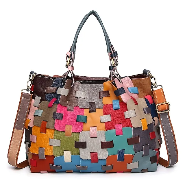 Women's Handbag Cowhide Daily Office & Career Zipper Geometric Rainbow