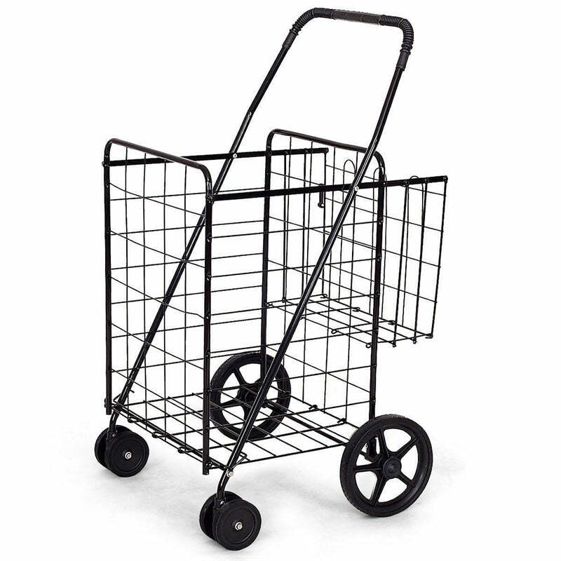 Jumbo Folding Shopping Cart Utility Cart with Double Basket & Swivel Wheels