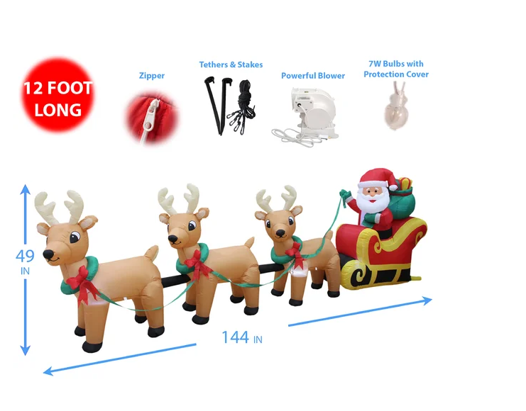 This inflatable is great for decor in and out of the home. The lighted design makes it perfect for your nighttime display. It can also be a great addition to your family photo. The lightweight materials and self-inflating design make it easy for anyone in the family to set up and take down. Once deflated, its compact design makes storage easy and allows it to be stored almost anywhere.