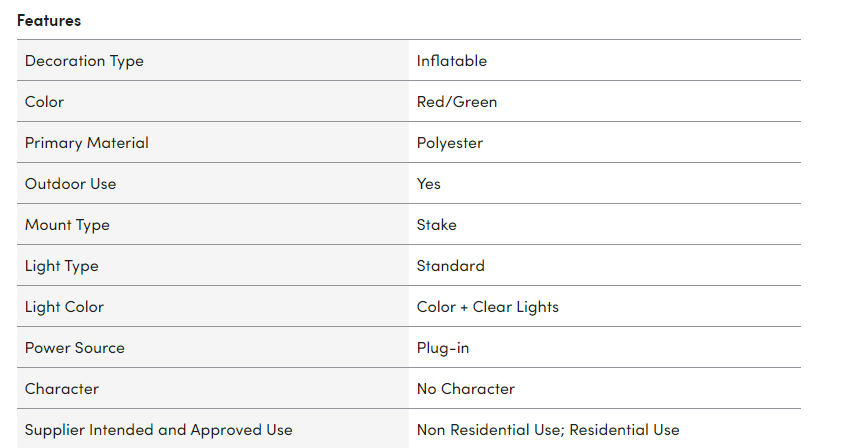A fun addition to your outdoor holiday decorating, this easy-to-set-up inflatable features a rotating display with a snowman, penguin, polar bear, and Santa Claus riding reindeer on a carousel. Simply plug it in, and it automatically lights up, inflates, and rotates! Includes stakes to secure it to the ground.