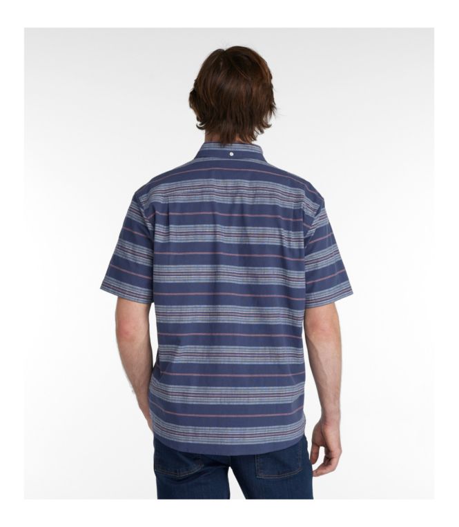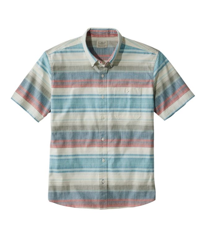 • Men's Comfort Stretch Chambray Shirt, Traditional Untucked Fit, Short-Sleeve, Stripe