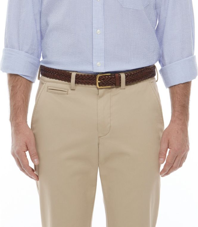 This stylish men's braided leather belt with an antiqued-brass-finish buckle pairs well with dressy and casual pants.
