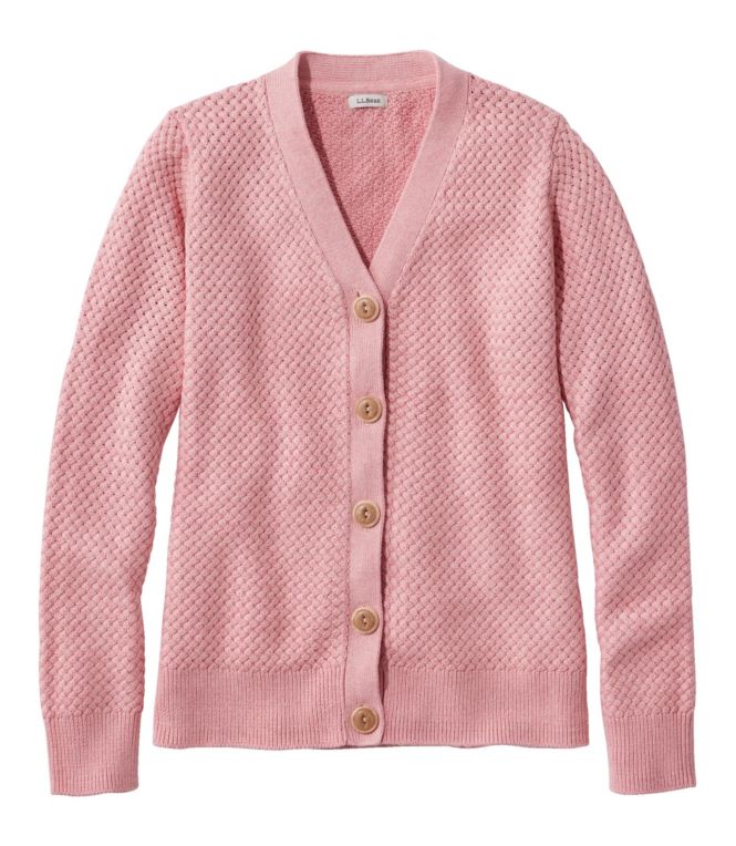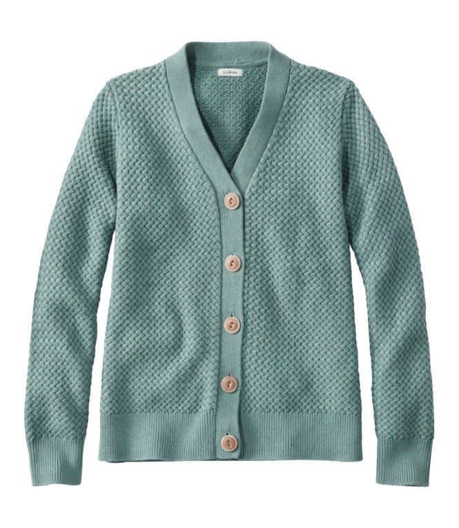 An easy, timeless layer ���beautifully textured in a mix of basketweave and jersey stitches. This button-front cardigan is extrasoft and seasonless in midweight cotton yarns.