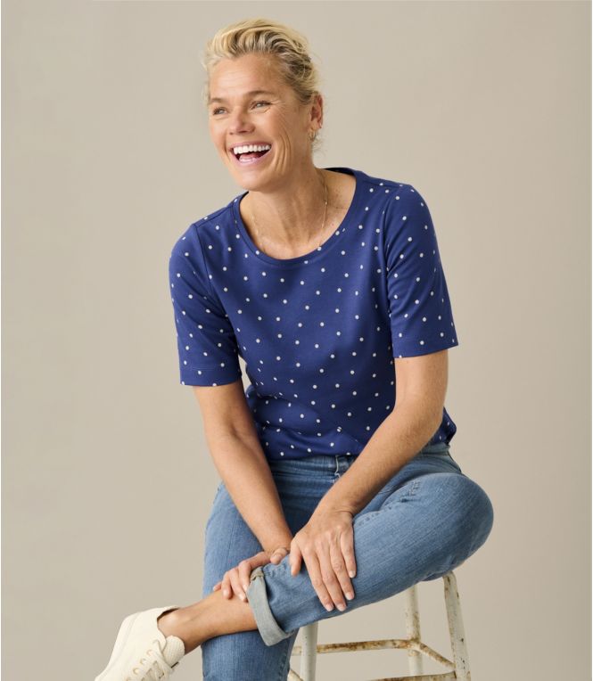 A flattering jewelneck and elbow-length sleeves give this printed cotton t-shirt great style and everyday appeal – all at a really great price.