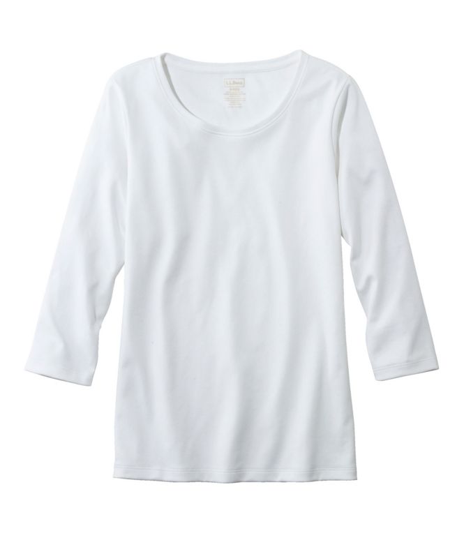 You asked, we listened – introducing our finest Supima cotton tee in a slightly longer, more shaped silhouette. With a feminine jewel neckline and three-quarter-length sleeves, it's sure to be one of the most versatile tees in your wardrobe.