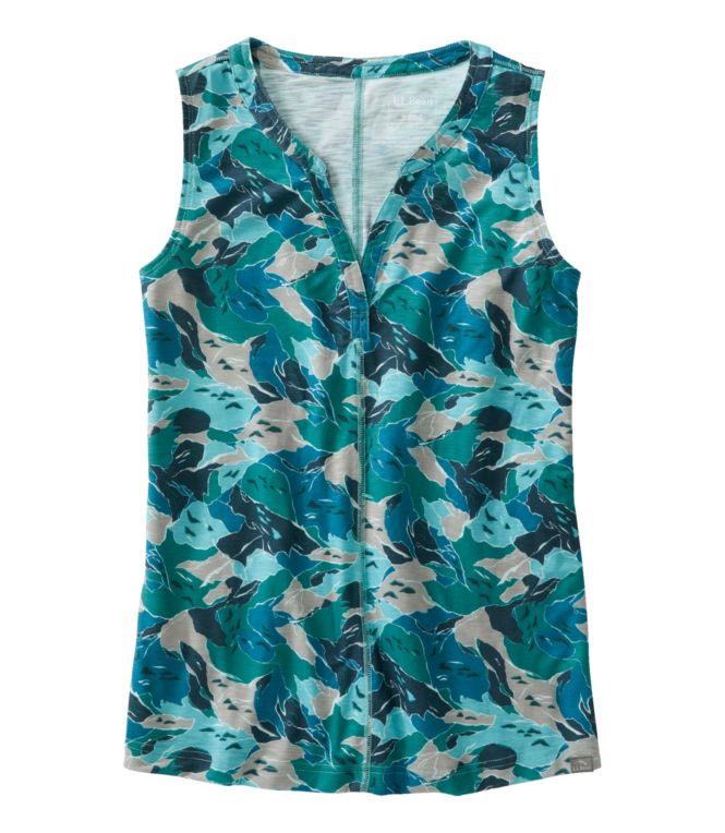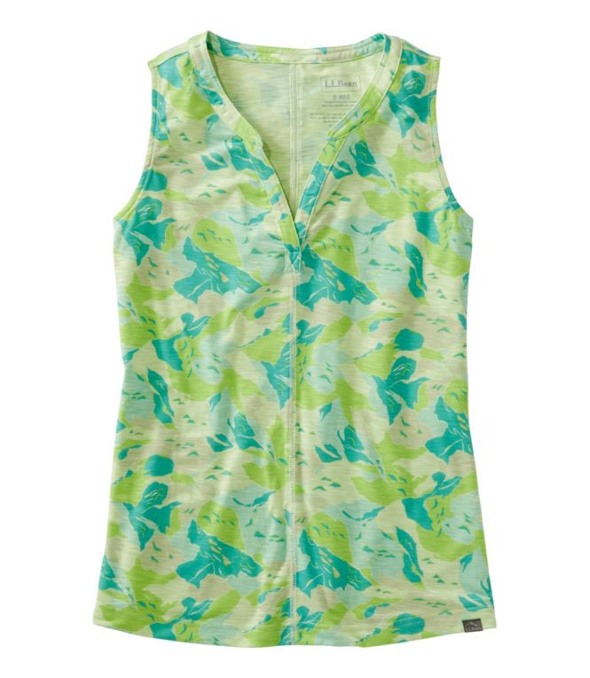 Ready for trail, travel and more, this ultrasoft printed splitneck tank wicks moisture and dries quickly for cool comfort.