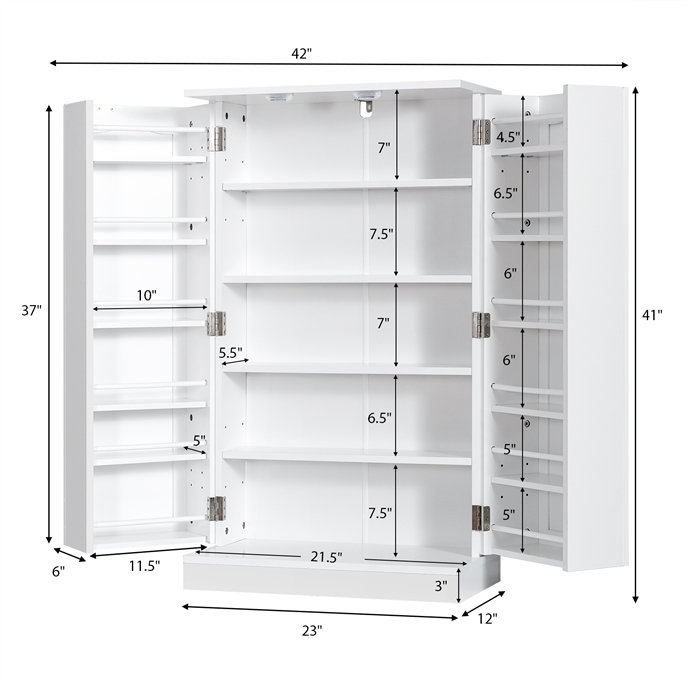 Do you spend your days in a narrow kitchen with very few places to put your kitchen supplies? Then add extra storage space to your kitchen or dining room with our multi-purpose kitchen pantry cabinet. This cabinet consists of 17 storage shelves, 12 of which are mounted on the doors, greatly saving space. The 6-height adjustable shelves can be adjusted to 18 fixed positions, allowing you to customize the appropriate storage space according to the size of the items. Therefore, this cabinet helps you organize your kitchen items and prevent clutter. In addition to practical storage space, the cabinet has a simple and stylish look that can be matched with different furniture styles of different rooms. More importantly, the selected material, exquisite workmanship, as well as stable structure guarantee a long service life. And the anti-toppling protection on the back ensures safe use.