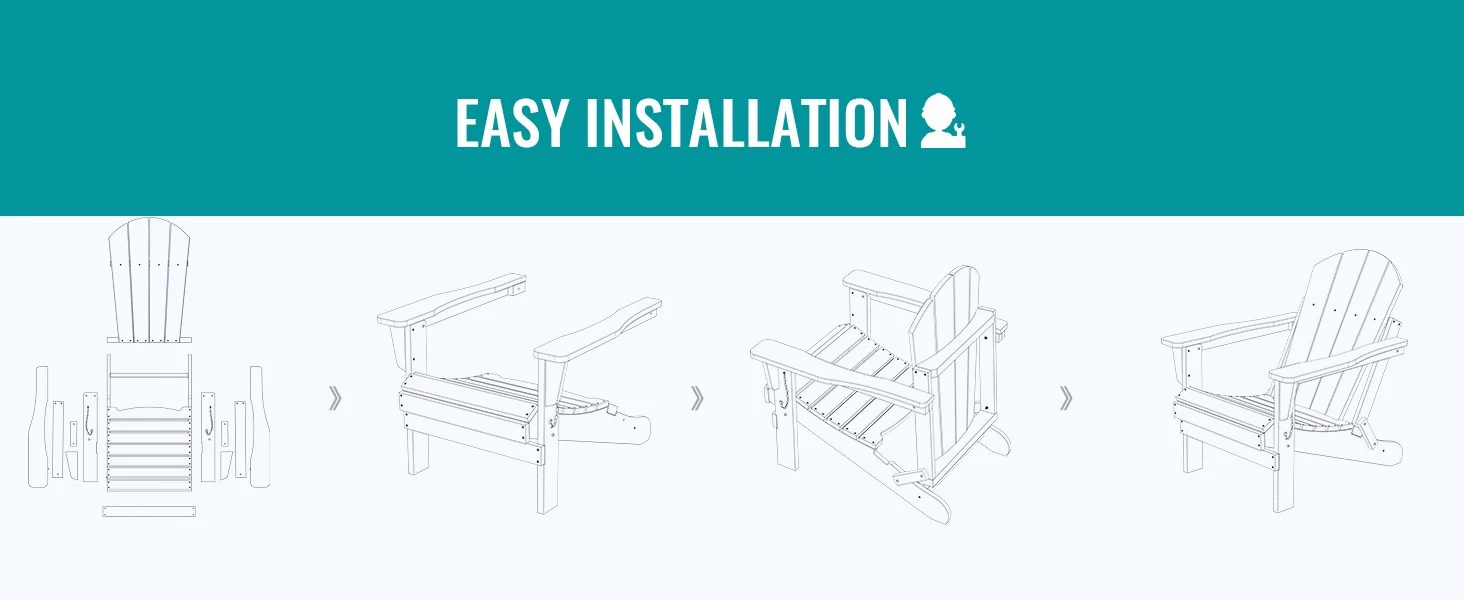- 【EASY TO ASSEMBLE】- Partial assembly required, hassle free. Just tighten the screws and splice parts according to the instructions, with 6 pieces, 5 steps, 15 minutes, you can own a durable folding Adirondack chair.