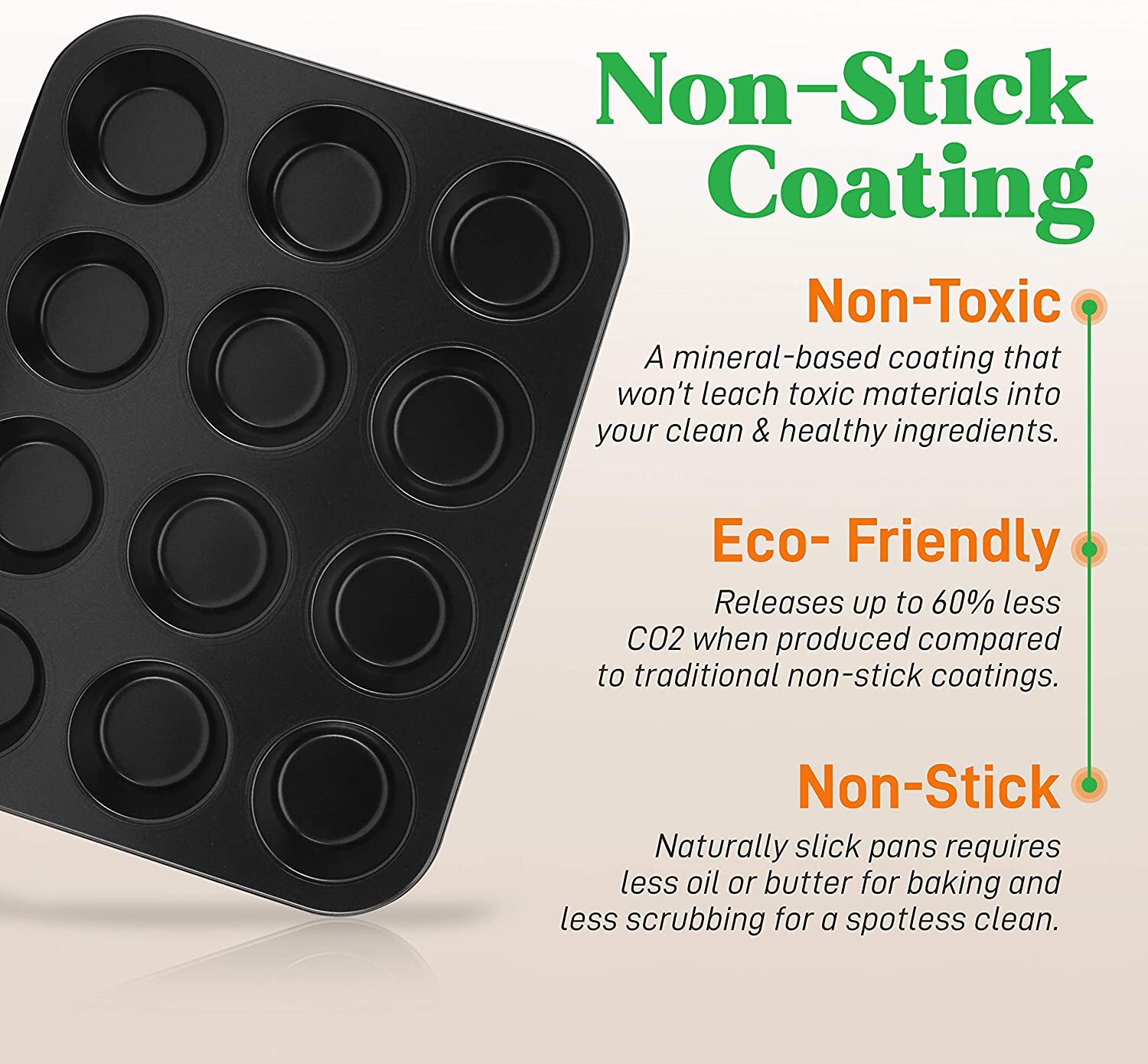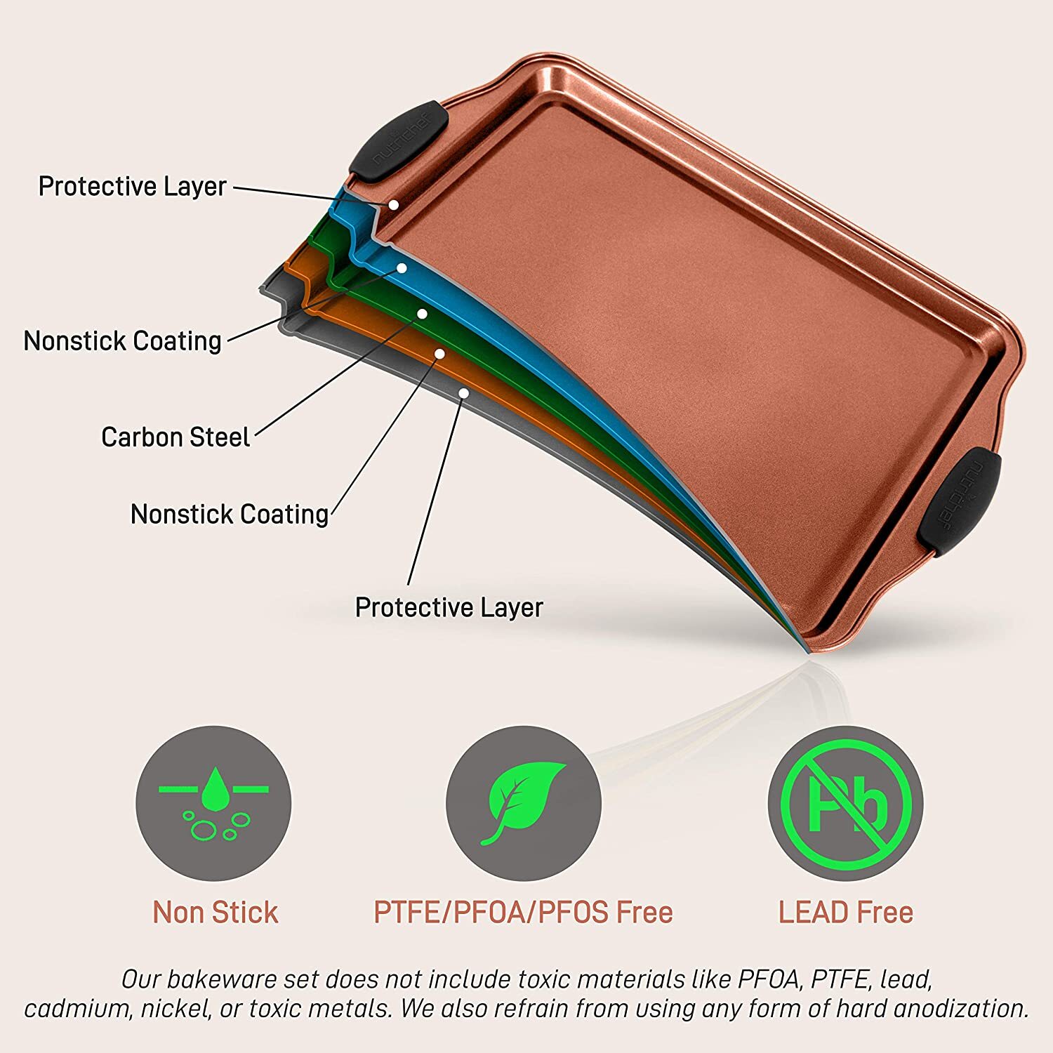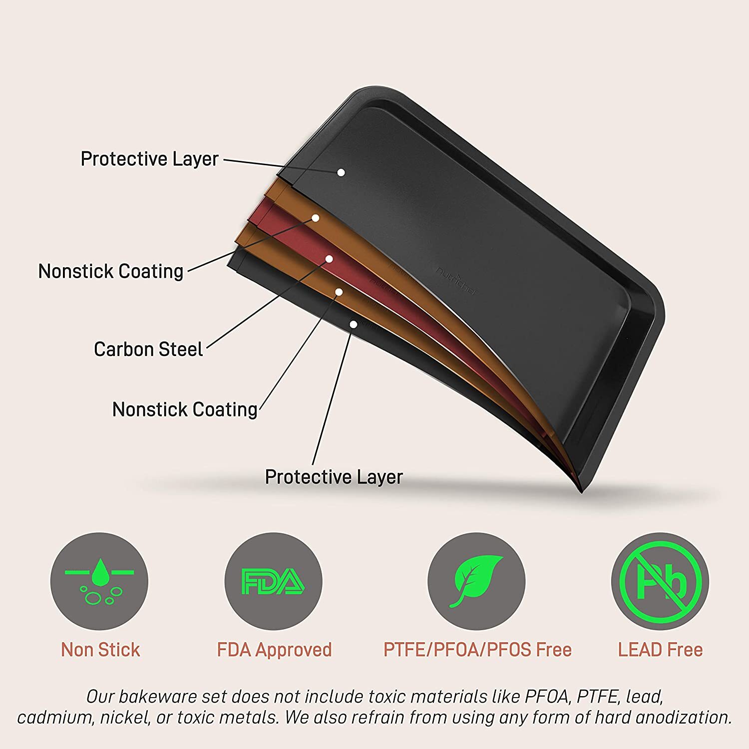 • HEAVY-GUAGE CARBON STEEL COATED WITH A SAFE NON-STICK MATERIAL (PTFE) - Top quality carbon steel ensures that these baking supplies remain rust free while the nonstick coating allows food to slide on and off and eliminates the need for cooking spray. Unlike other nonstick cookware,