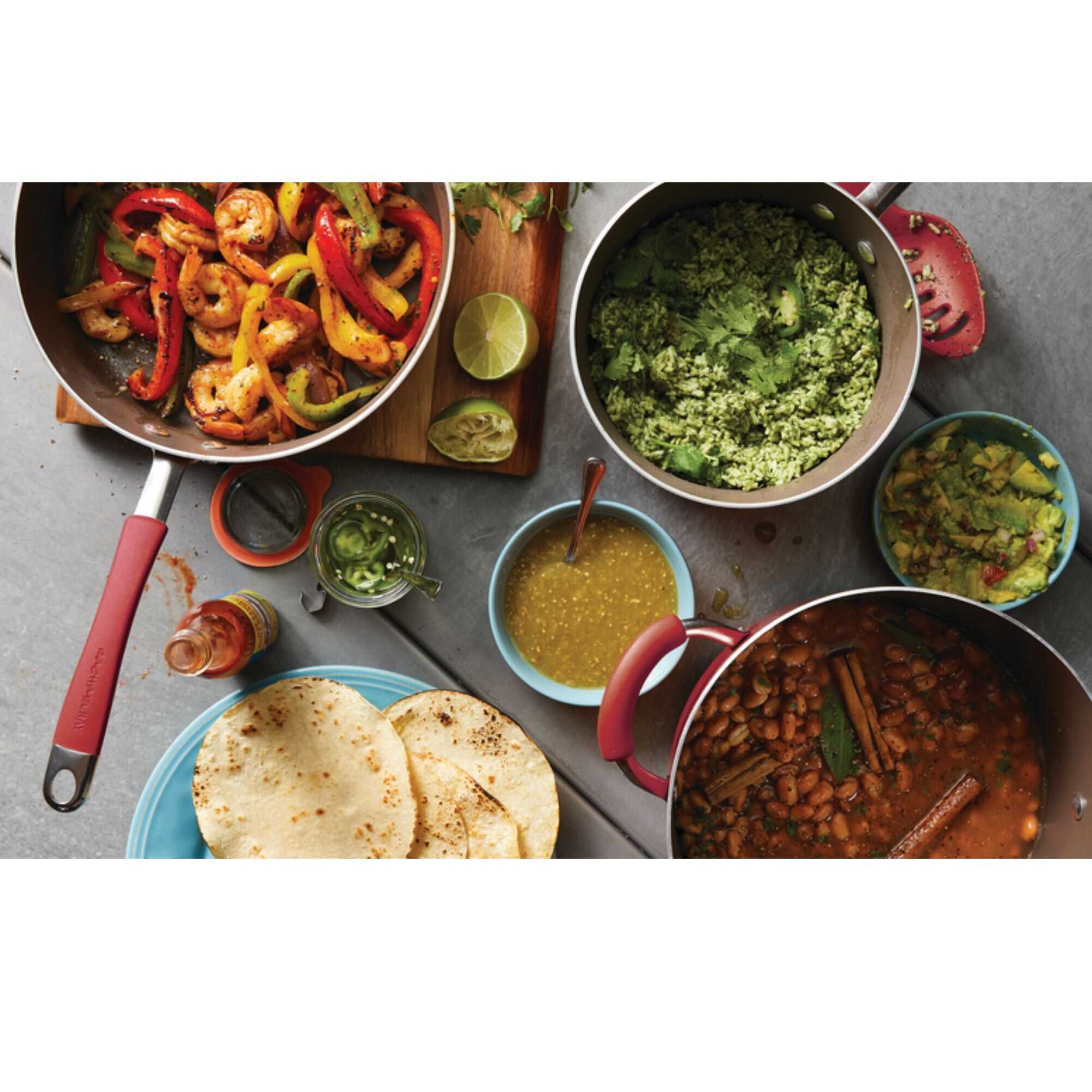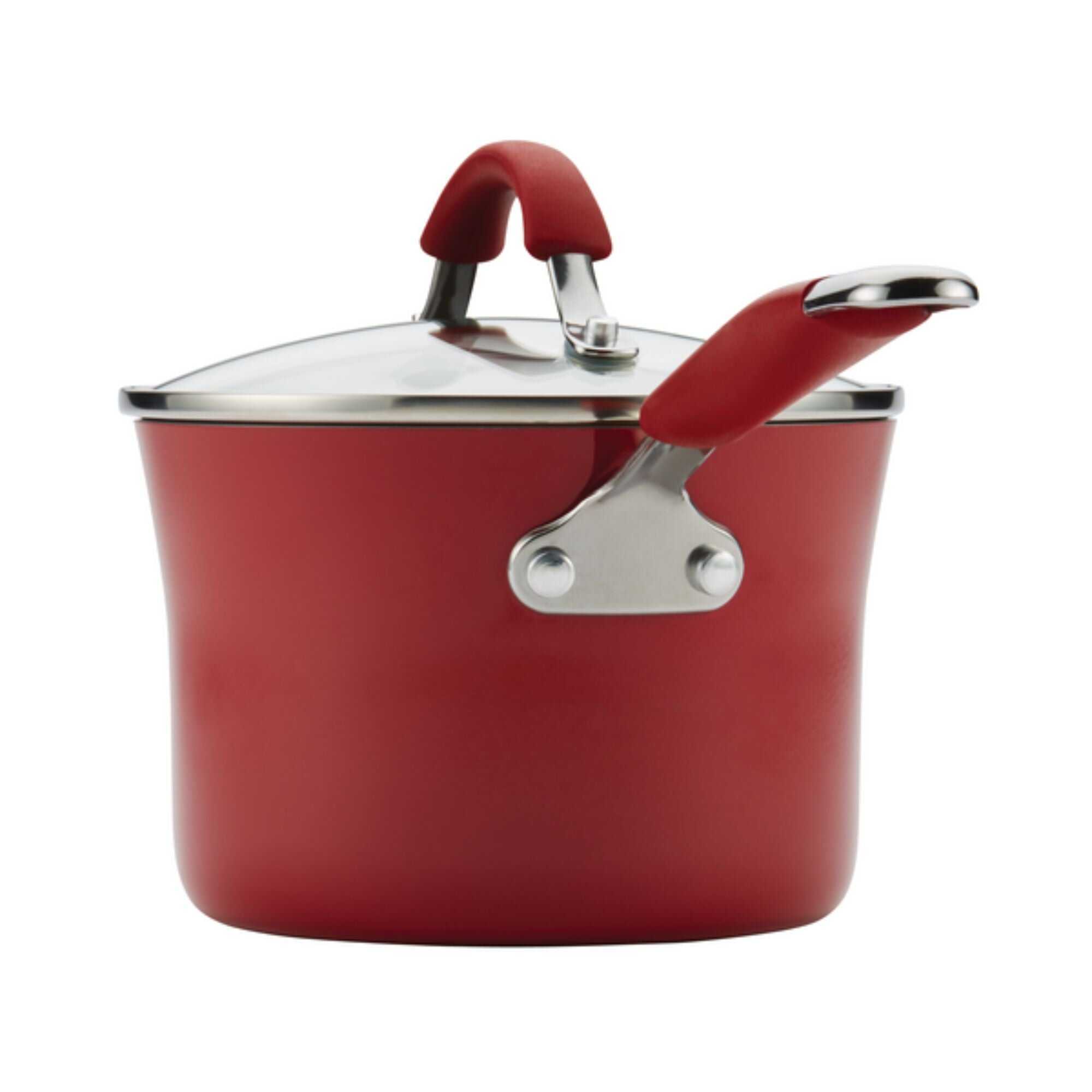 - Rachael Ray Cucina Cookware features rustic, modern Red colour, functionality and design to enhance mealtime warmth and hospitality.