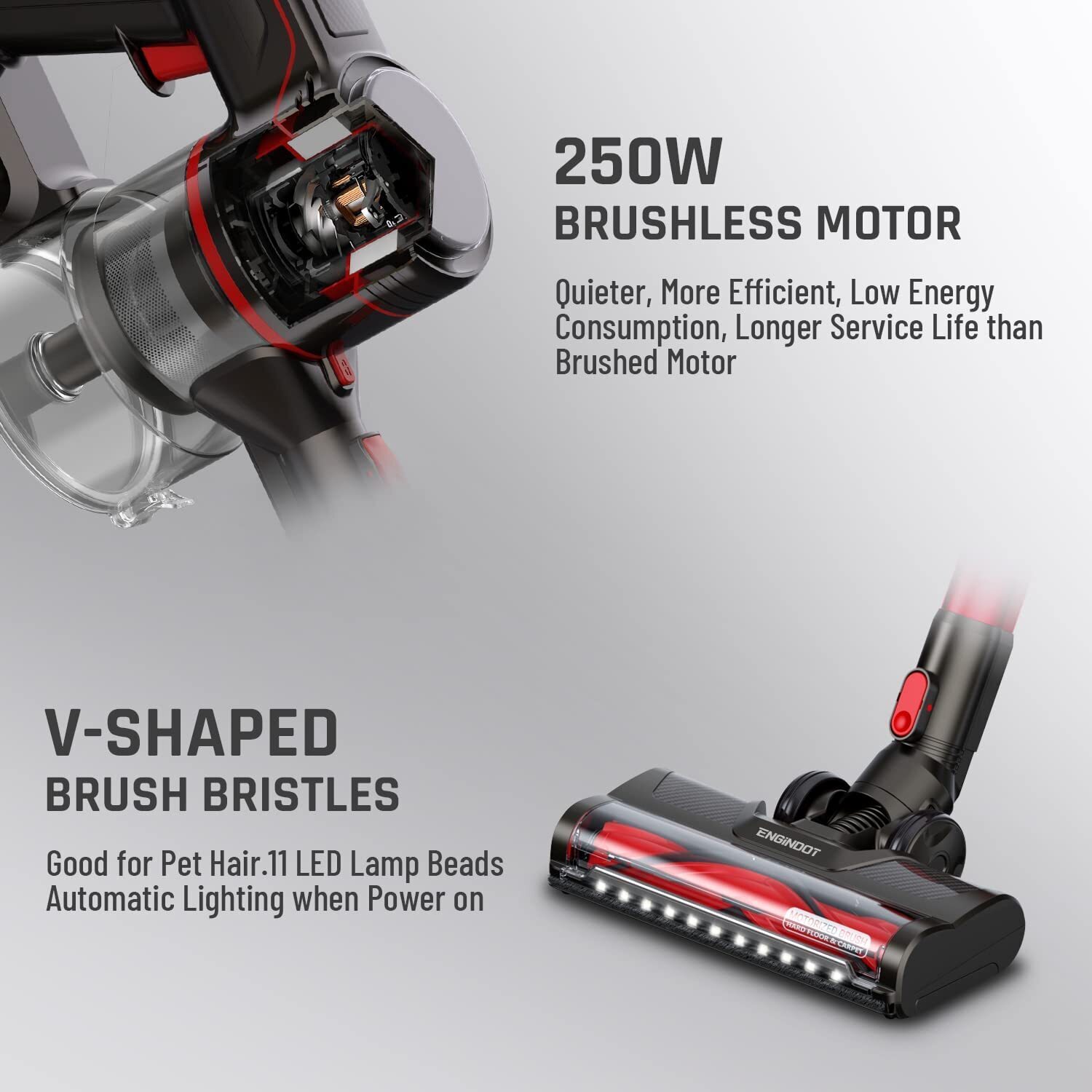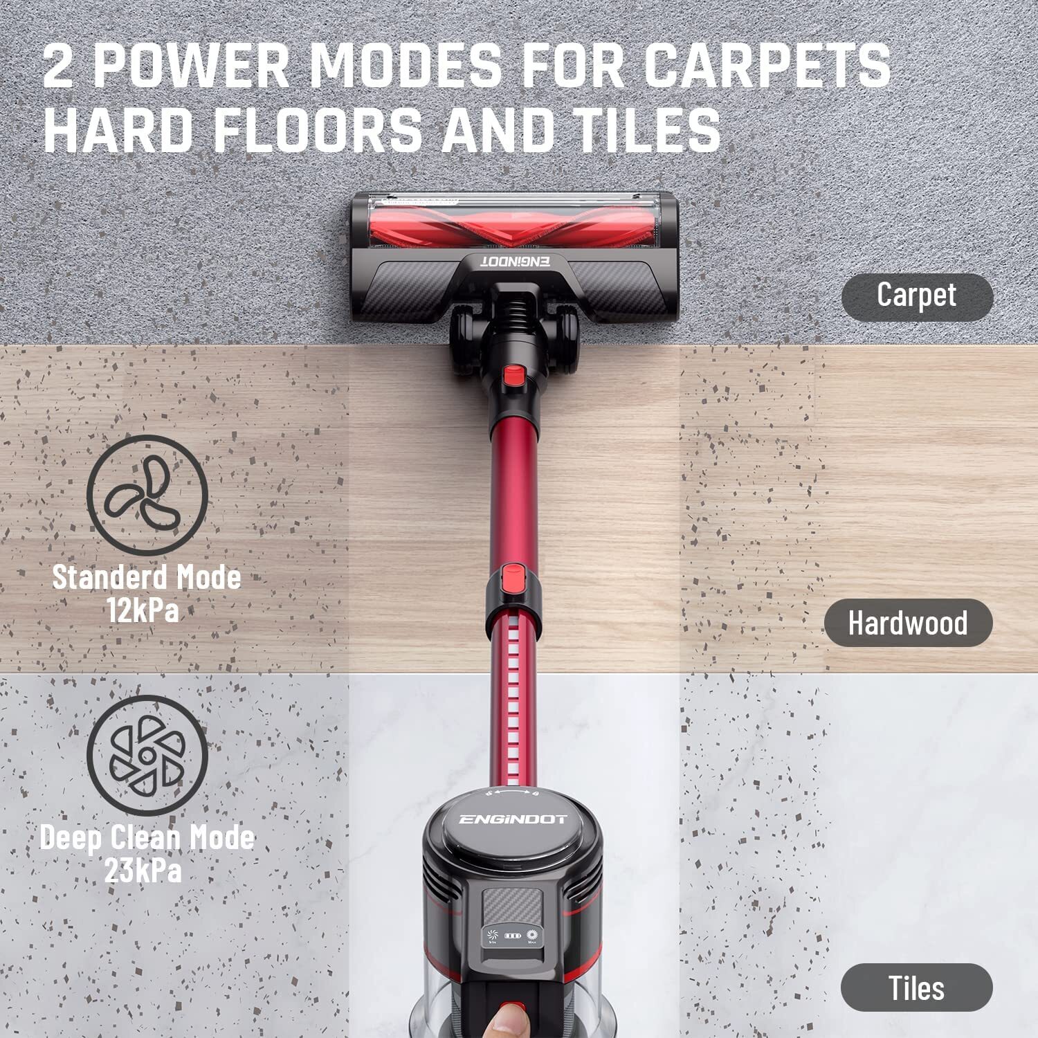 • Provides up to 23Kpa of powerful, non-fading suction with two suction modes for easy cleaning of debris, dust, and pet hair