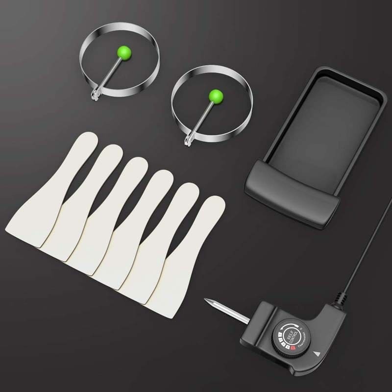 - Equipped Tableware: This large electric griddle comes with 6 free wooden spatulas and 2 egg rings for much more convenience. Slide-out Drip Tray can be removed and cleaned easily.