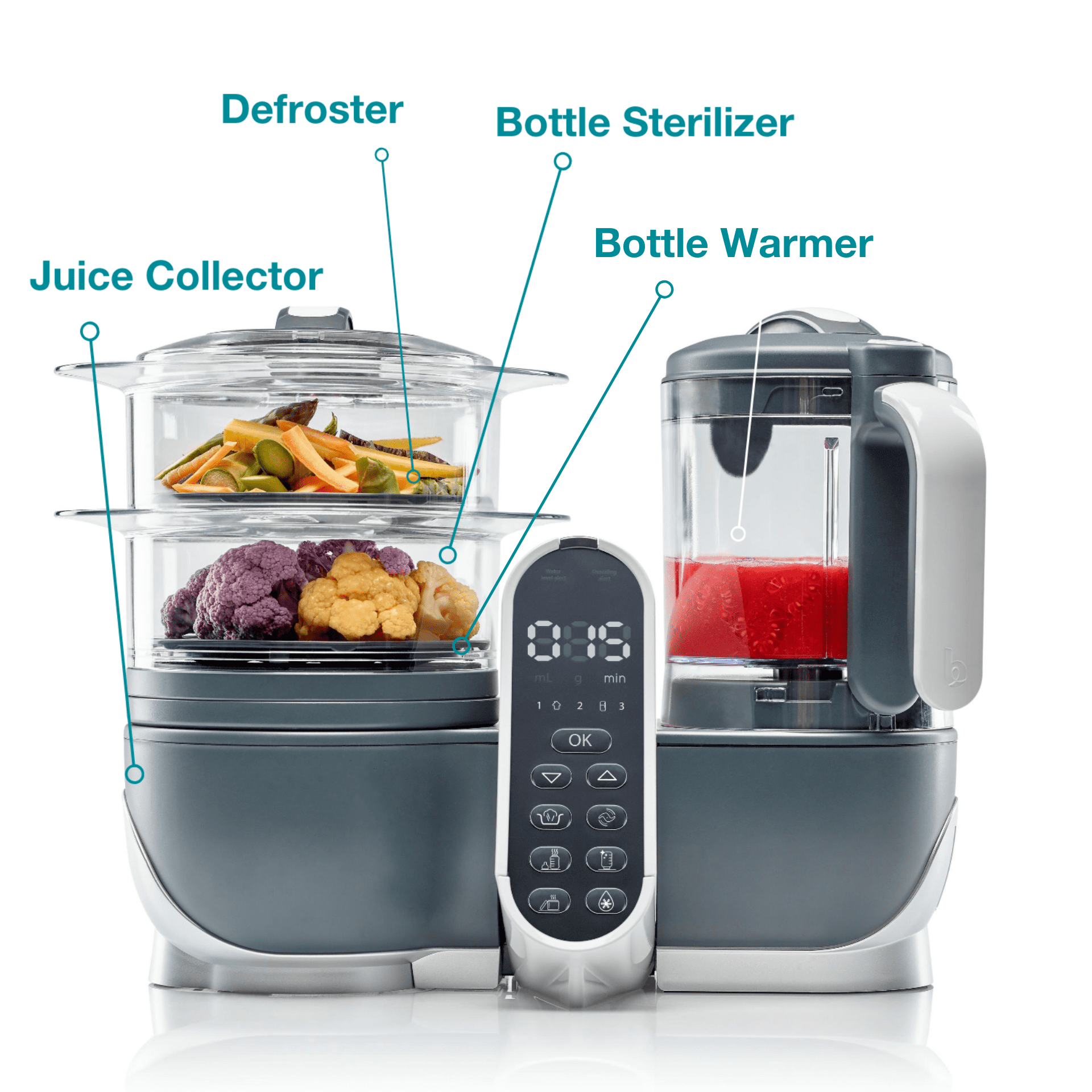• All-in-one design that cooks, blends, warms and defrosts your food and can be used as a bottle warmer/sterilizer to reduce need for separate appliances and save space