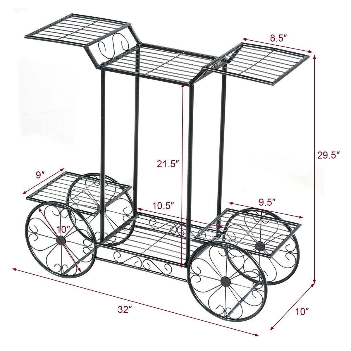 Made of full-metal structure with power-coated surface, the 6 tier metal garden cart stand with decor wheels is durable and rugged enough for a long service life. It will be a unique and practical accessory to light up the room!