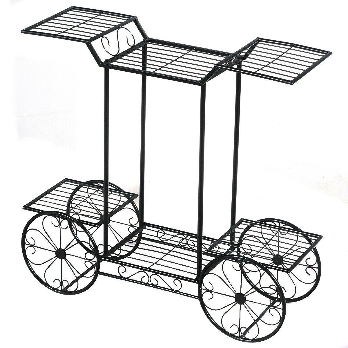 - 6 Tier Flower Pot Rack: Equipped with 6 tiers in all, the garden cart stand provides large space for display plants, flowers, and garden decorations. The staggered vertical shelf guarantees better growth of each pot of flowers. Plus, the compact size combines vertical design, the metal rack is space-saving.