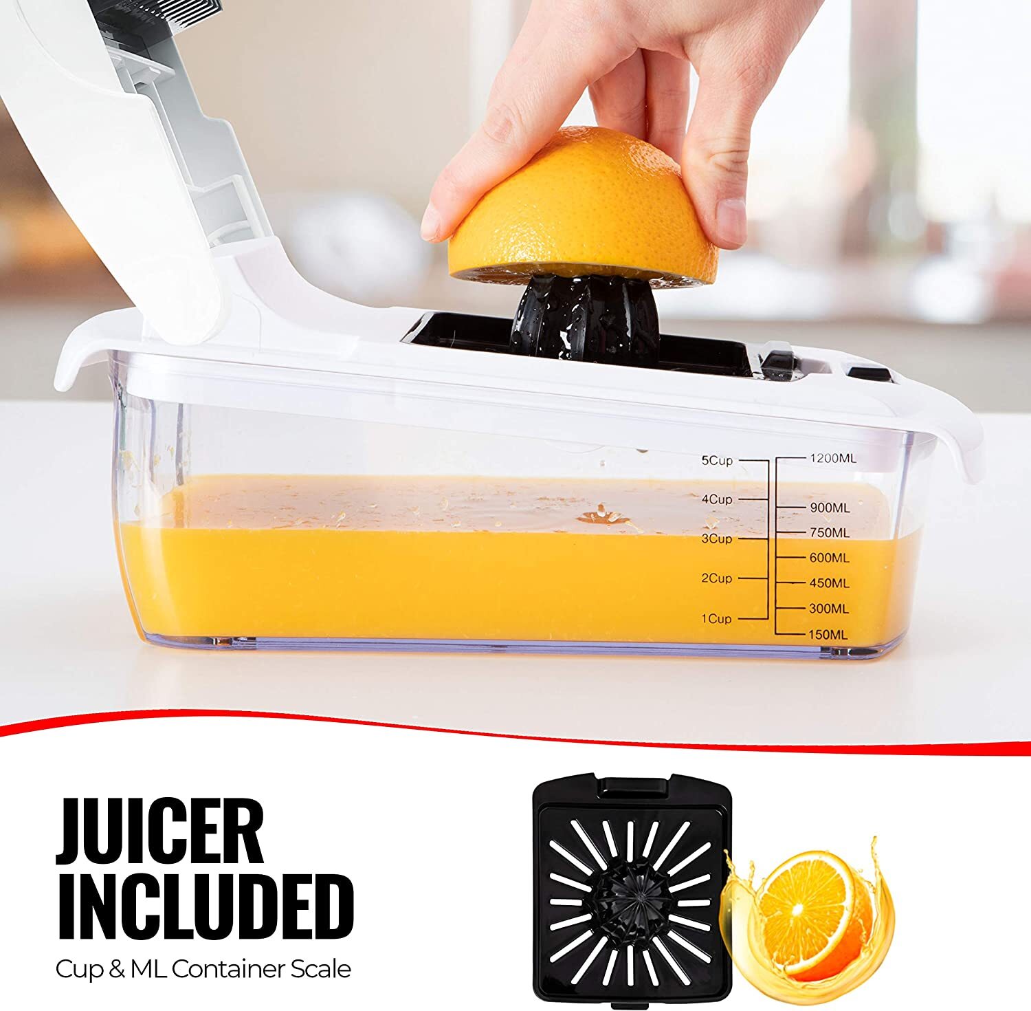 - Bonus handheld peeler, juicer, egg separator and slicer - juice your lemons, separate your yolks from your egg whites and slice your hard-boiled eggs with ease with this all in one food choppers and dicers. Plus this set comes with a Bonus peeler that can both peel and julienne your veg. These are in demand kitchen gifts for women and men this season!