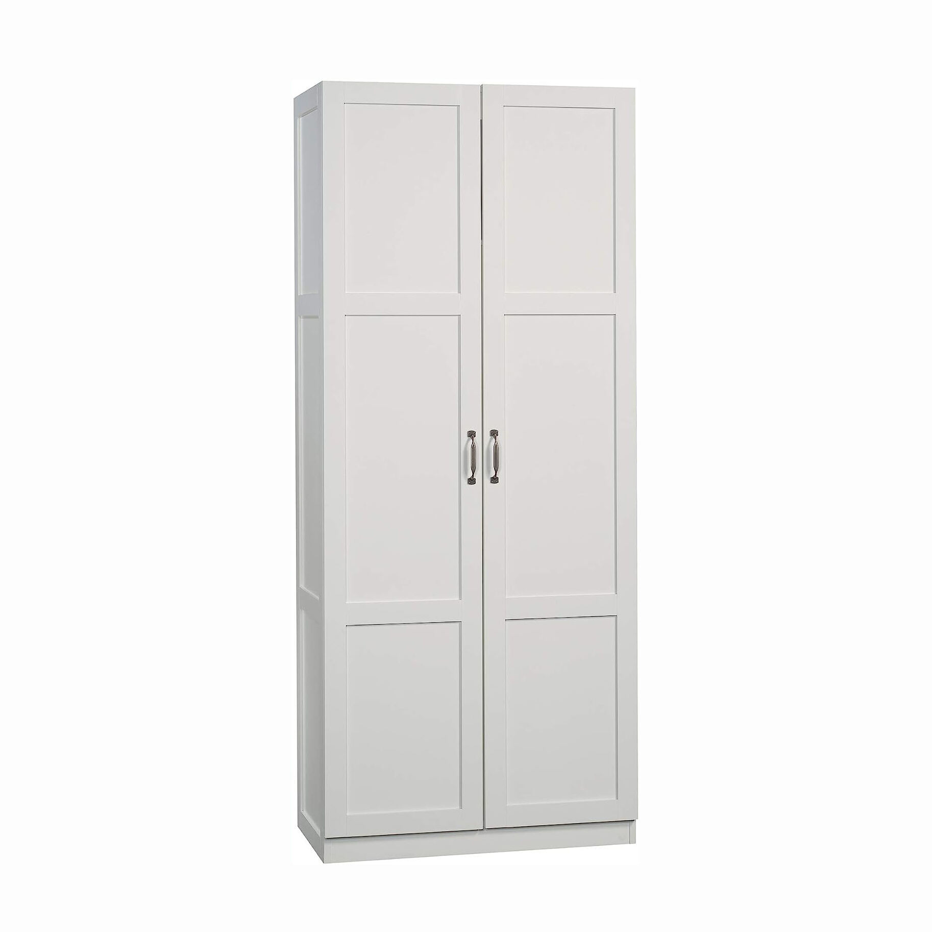 This double door storage cabinet offers the perfect amount of style and practicality for any room in your home. This durable storage cabinet has four adjustable shelves and a full-width upper shelf so you can stash books, totes, blankets, pantry items and more.