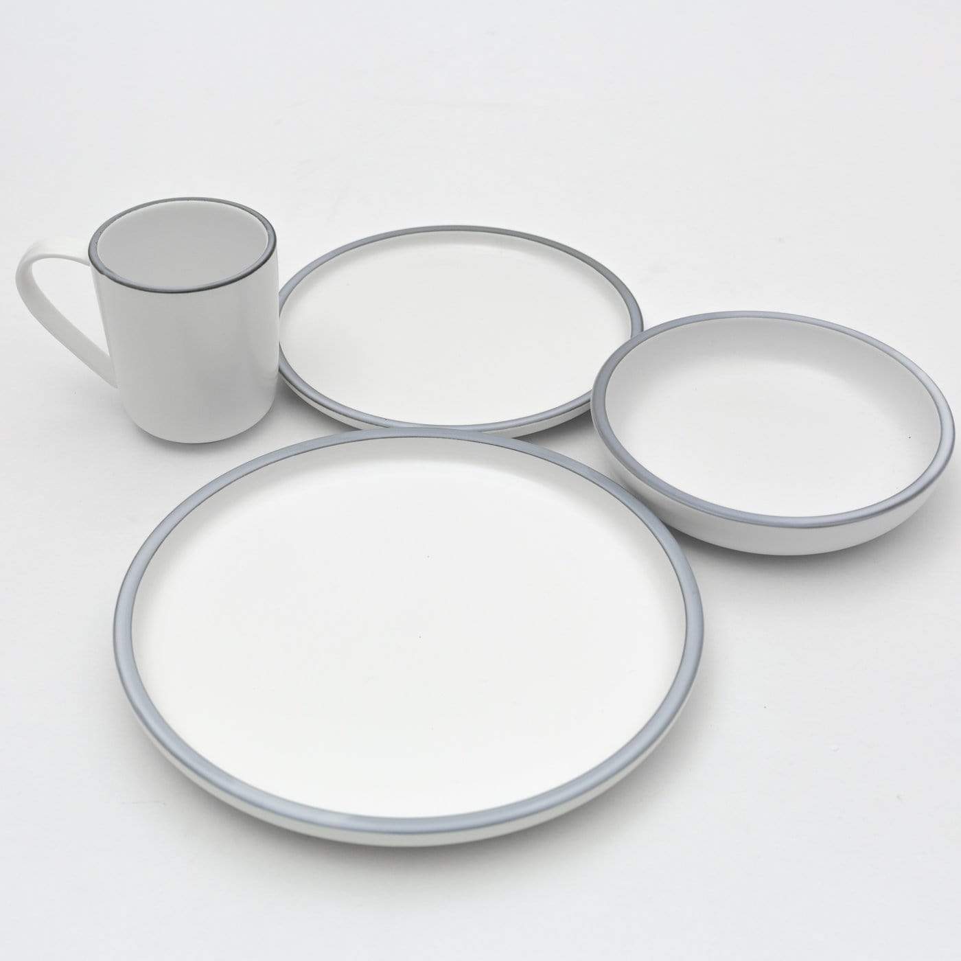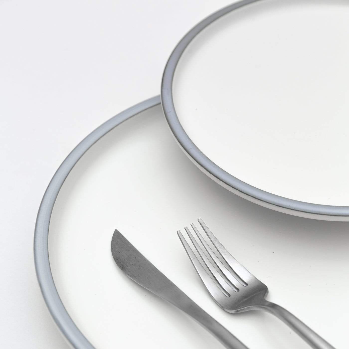 The Apatite Dinnerware Set is a mix of modern design and exceptional quality with a matte silver border, elevating every look for those special occasions in your home!