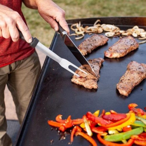 As the cornerstone of Blackstone Products, our 36-Inch Griddle Cooking Station offers an expansive 36″ x 21″, 756 sq. in. cooking surface; easy assembly with a quick and easy ignition button; two cantilevered work surfaces and a bottom shelf to make food preparation convenient; easy to remove griddle top, held stable by a stout steel frame and four industrial strength caster wheels, 2 of which lock; thick cold rolled steel griddle cooking surface; steel frame powder coated in protective black; and four independently controlled 15,000 BTU stainless-steel burners, for a total of 60,000 BTUs controlled low-to-high for versatile cooking options. We know you will love using our Blackstone 36″ Griddle Cooking Station this summer as much as we will!