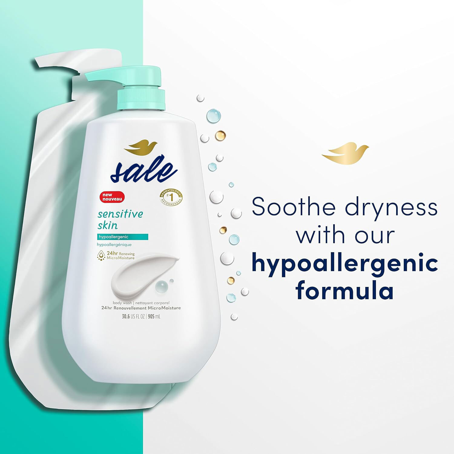 - 24HR RENEWING MICROMOISTURE: Dove Hypoallergenic Sensitive Skin Body Wash gently cleanses and nourishes the skin, leaving it renewed and healthy-looking for 24 hours