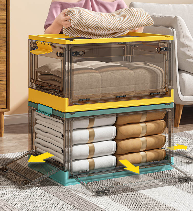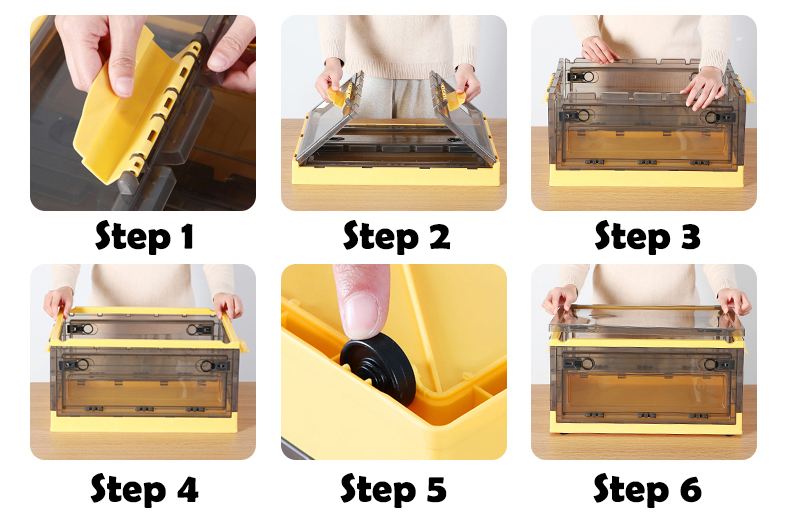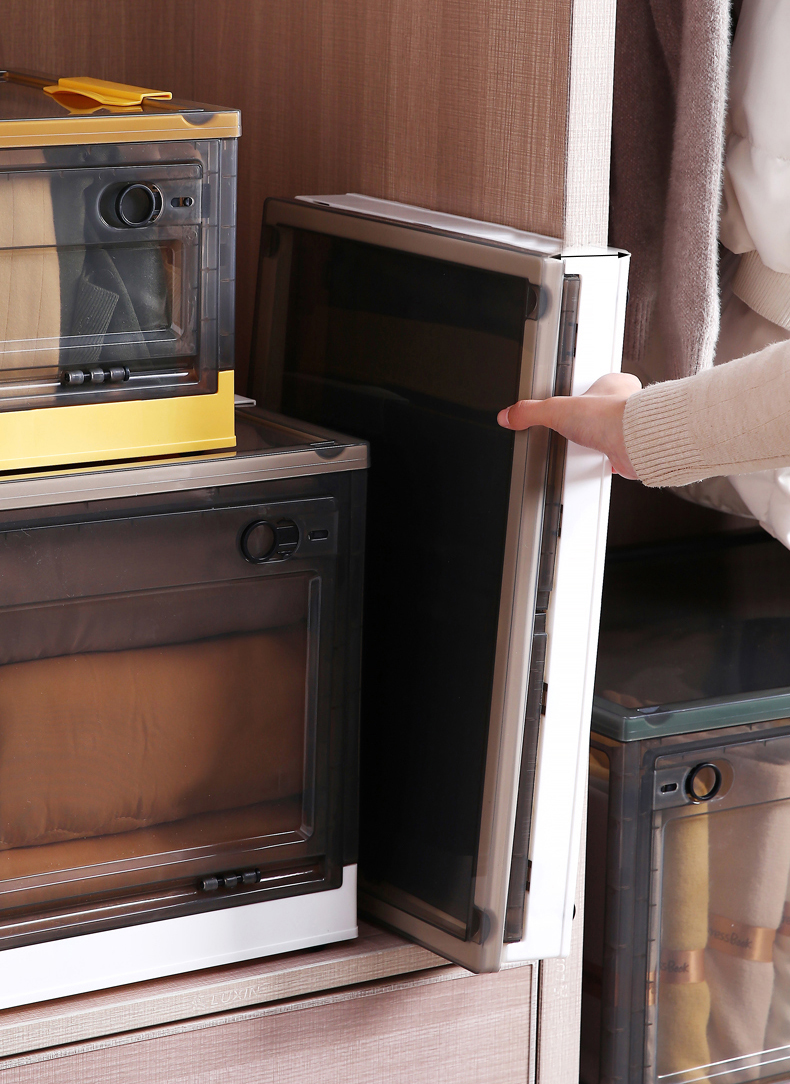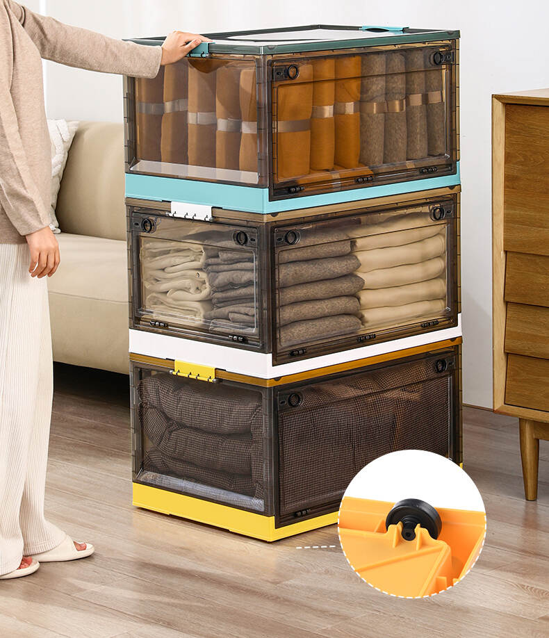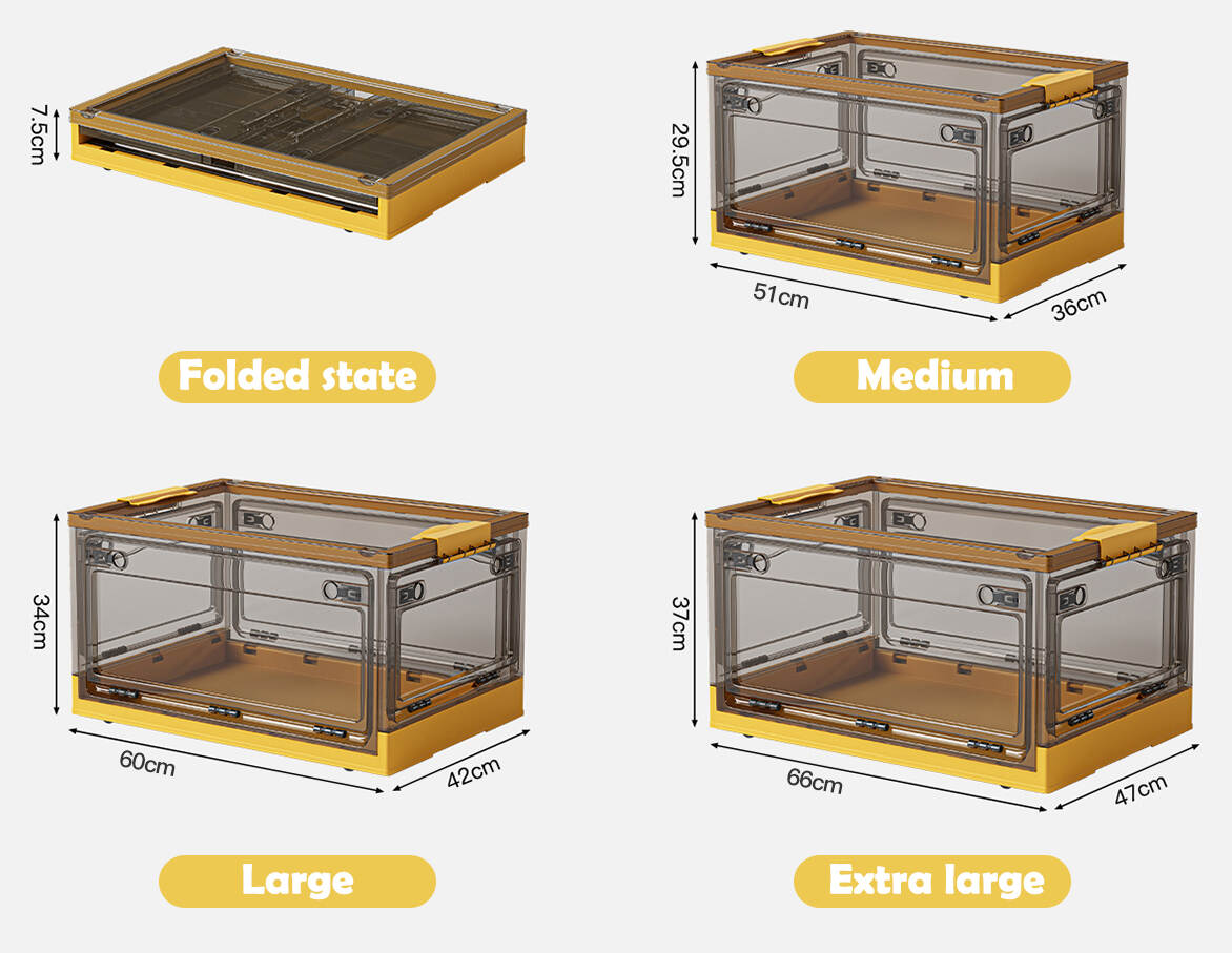 Easy to use : The lid and flaps on the four sides can be opened and closed independently to make it easy to remove or insert items. Front and side view window to view the inner contents without opening the box . Label holder to mark what is stored inside. A sturdy stainless steel frame keeps the storage bag firm, upright and upright. Side handles for lifting the living box. Completely collapsible when not in use. Even the smallest details have been kept in mind to make these storage boxes very user-friendly.