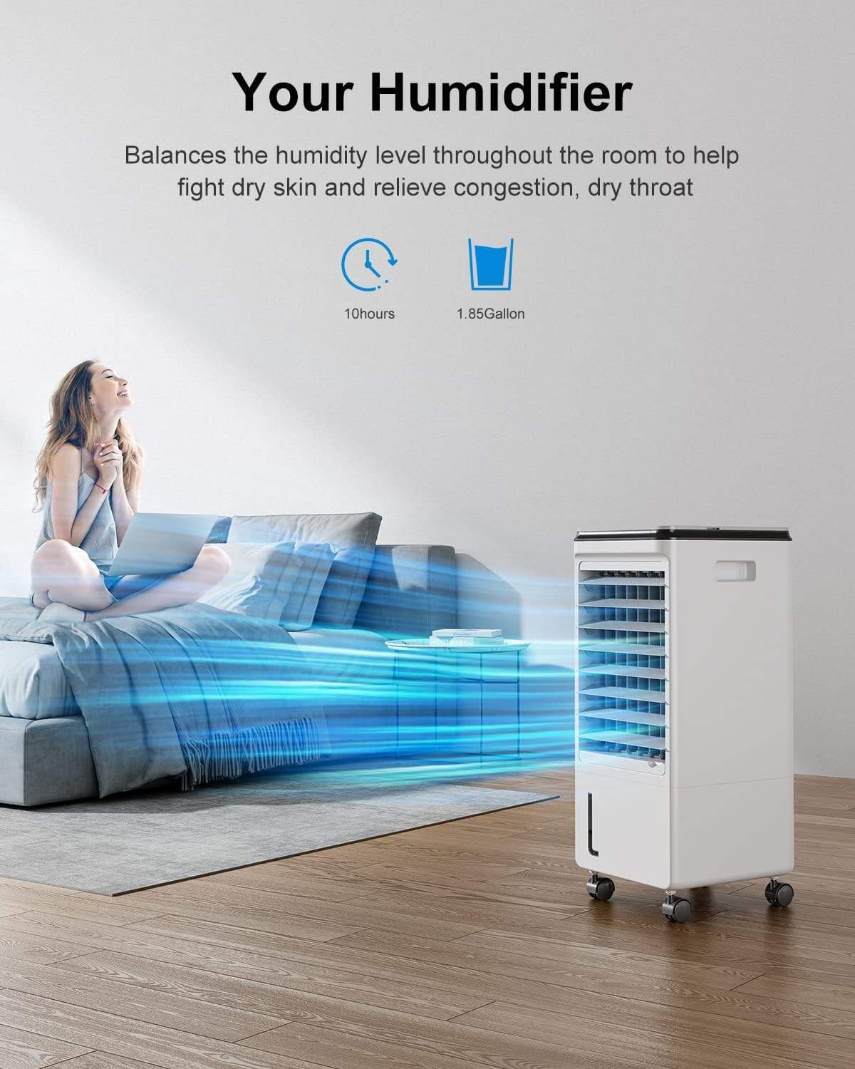 - ❄Customizable Settings: Cozzyben evaporative air cooler offers 3 modes and 3 wind speeds to meet your individual needs. The bedroom air conditioner's cooling mode releases moisture, increasing air humidity to alleviate discomfort from dry environments. Normal mode functions as a practical tower fan, making it a versatile portable cooling fan option.