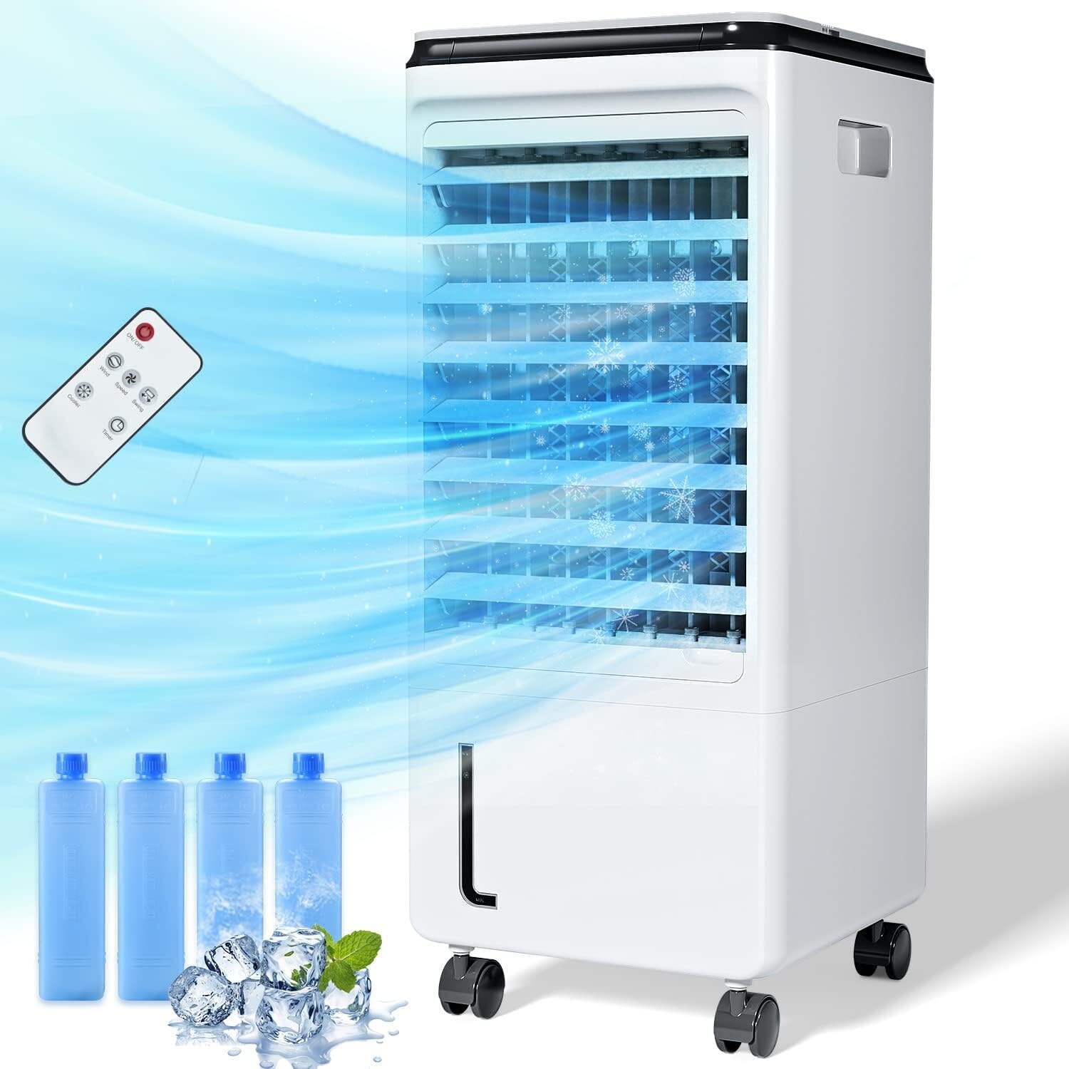- ❄Certified Safety & Stylish Design: ETL-certified room cooler features bladeless wheel structure and finger-safe grille design, reducing the risk of injury and making it ideal for families with children or pets. Built-in handle ensures easy portability, and its compact, stylish appearance serves as an eye-catching home décor piece. 24/7 online customer support available for any product issues.