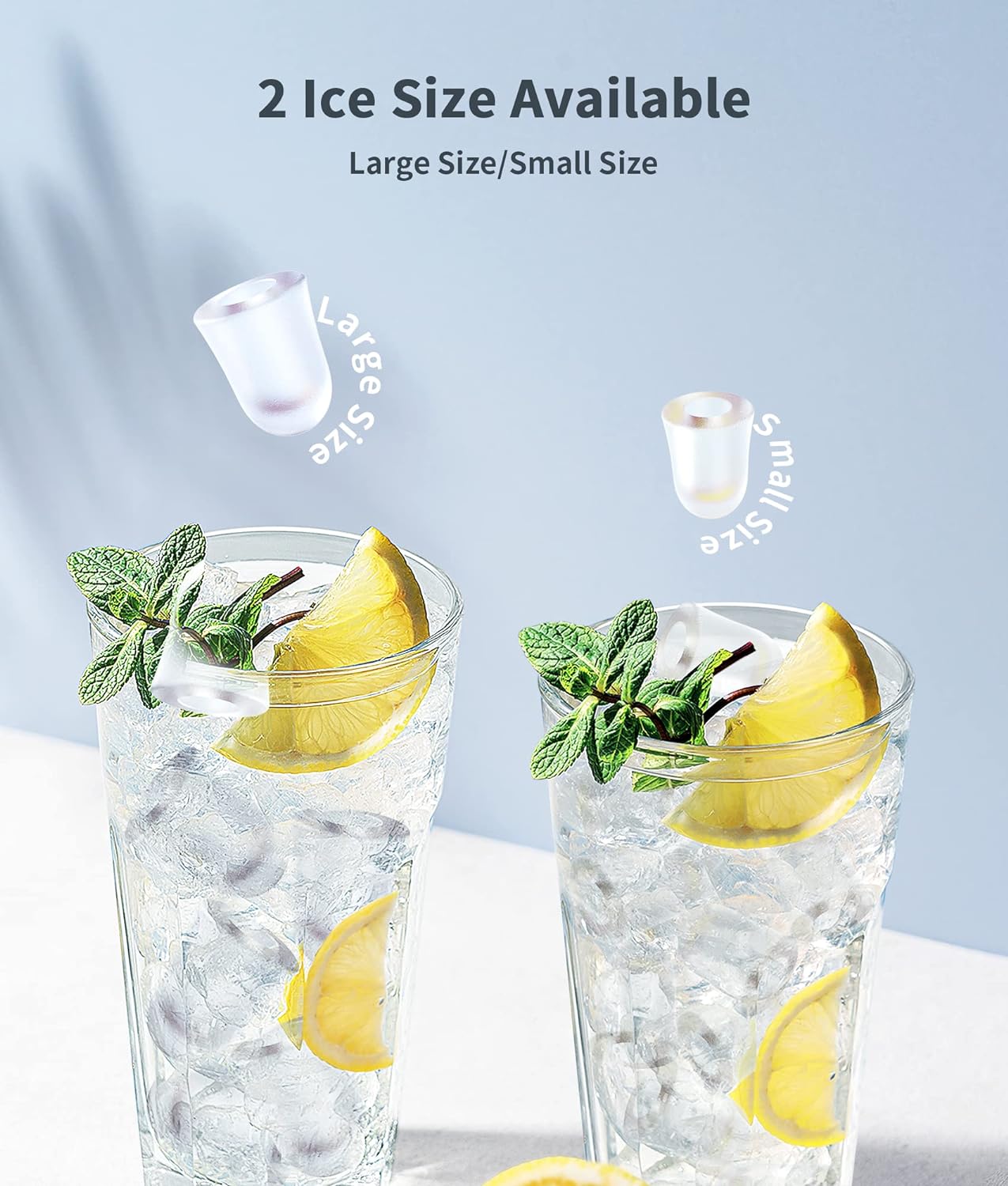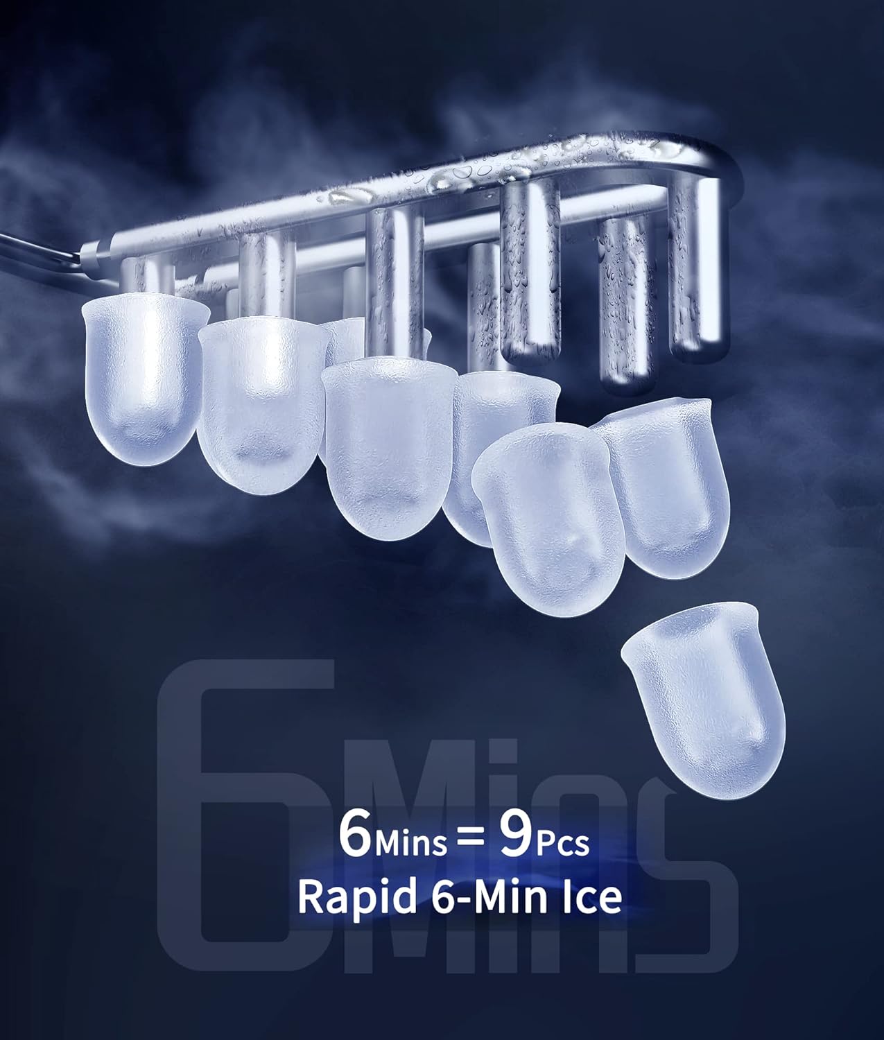 - 7 oz of Ice in 20 Mins - The new type of extrusion ice maker exhibits exceptional ice production efficiency! Get 7oz soft and crunchy cubes ready in 20 mins for your drinks. It produces enough ice for 3-5 drinks in an hour, perfect for home use. No more hassle of going to the store for ice - get the perfect ice anytime!