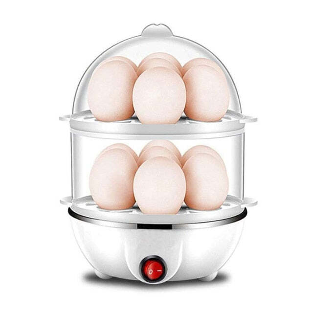 Multi-function egg pot:/strong>This double-layer egg slasher can prepare a healthy and nutritious breakfast for your family quickly and easily in a matter of minutes. This is a versatile double-layer egg maker that can steam 7-14 eggs at the same time. In addition to steamed eggs, you can also heat milk, steam corn, vegetables, seafood, tortillas and more!