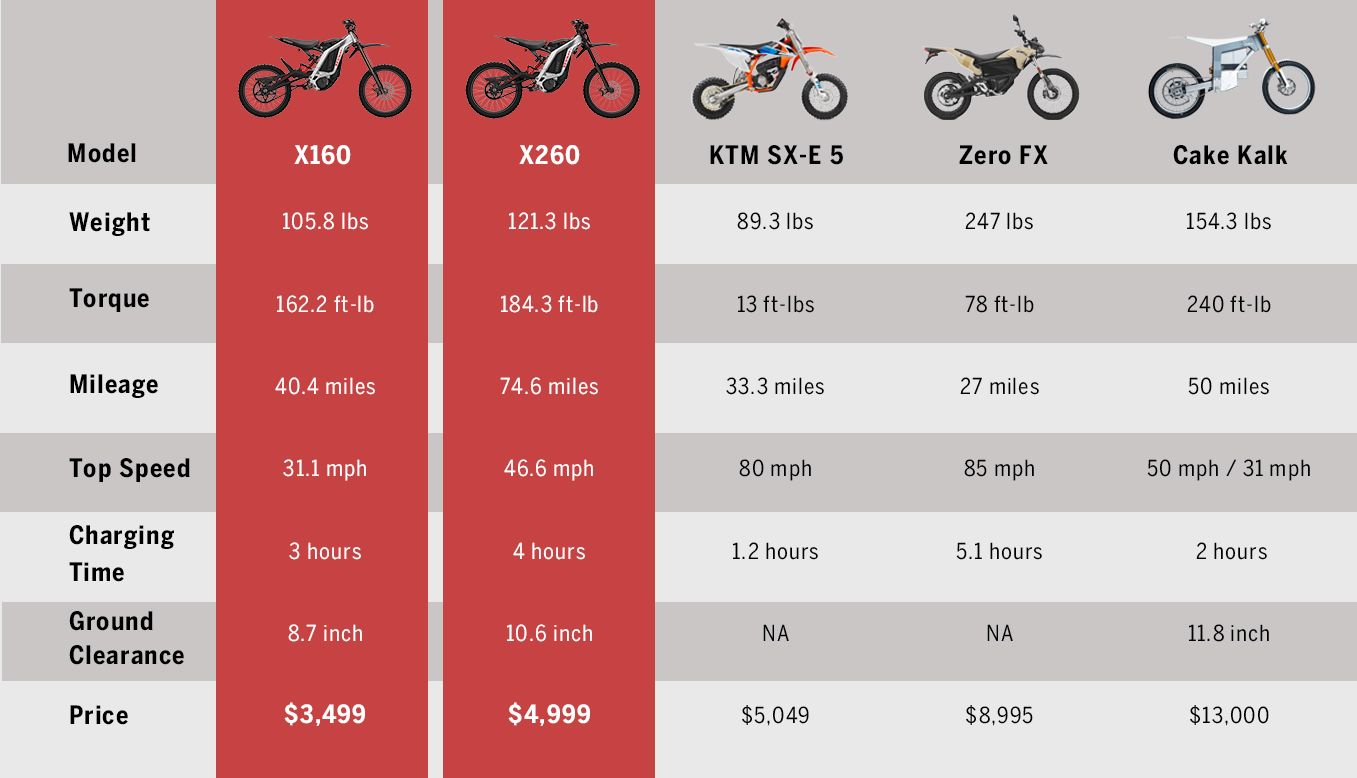 The fast-charge battery takes only 4 hours for a full charge and delivers 74.6 miles range in one single charge (X260 model). Swappable batteries will take your adventure even further.