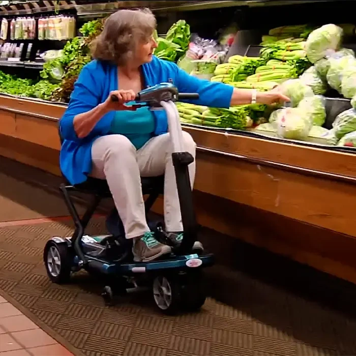 With an overall width of just 17 inches, it easily travels through smaller spaces and can go in and out of standard doorways without any problems. With a turning radius of 55 inches, you can easily maneuver through crowded areas all the while feeling confident and stable when driving it. The max speed is up to 4 miles and it can go a distance of 40 miles on a fully charged battery. When you enjoy being on the go and don’t want to deal with taking apart a scooter for transport. The EV Rider 4-wheel mobility scooter is a must-have!