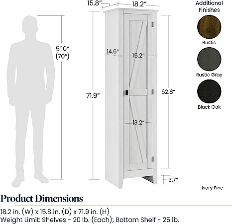 - Dimensions: 71.9”H x 18.2”W x 15.8”D