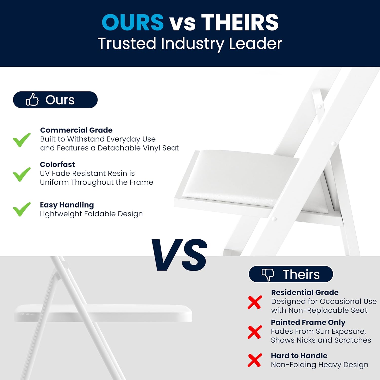 Commercial-grade resin folding chair with an upscale design making it the perfect special event chair. This product is engineered and built with premium materials that will withstand heavy duty use for event, business and home usage.